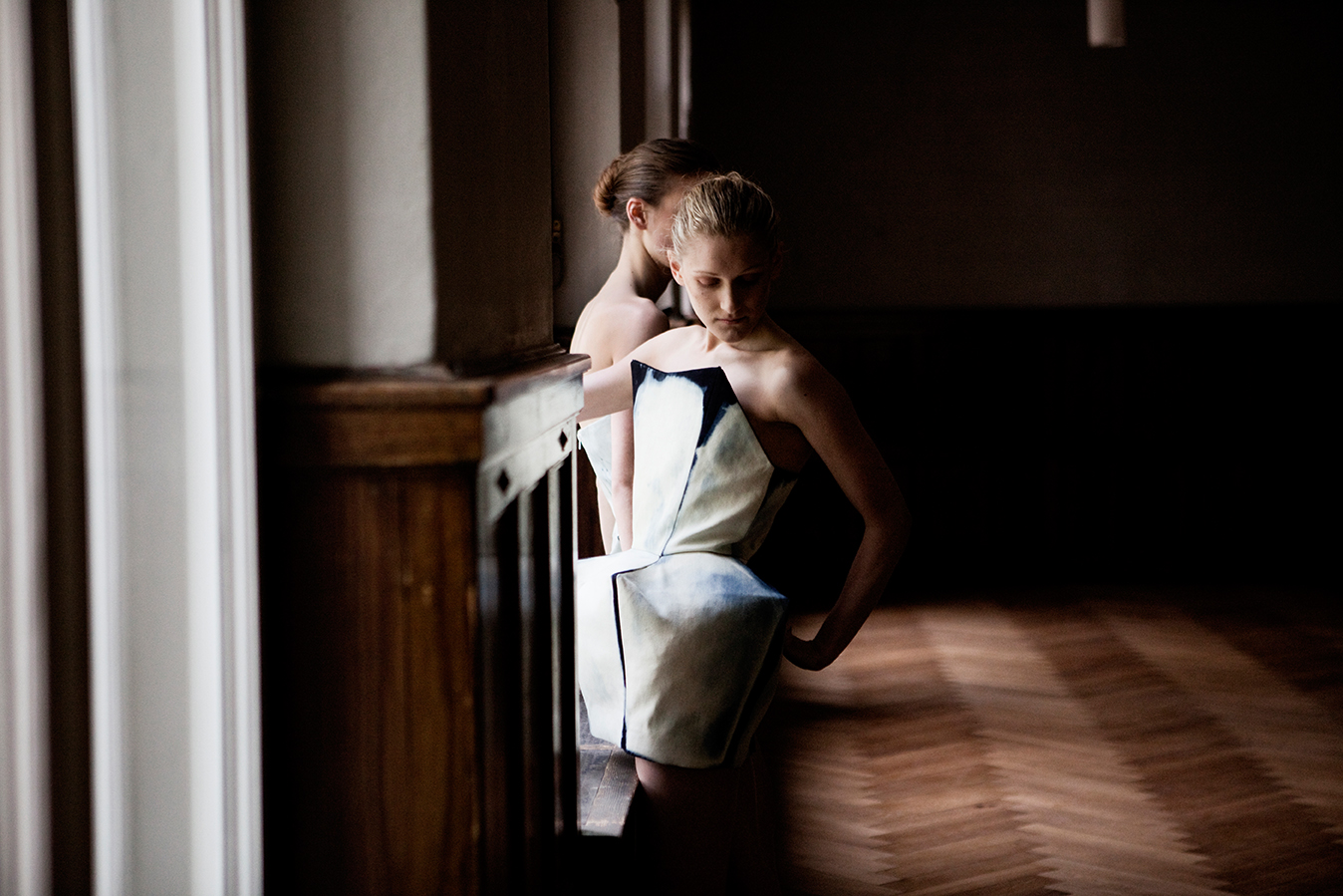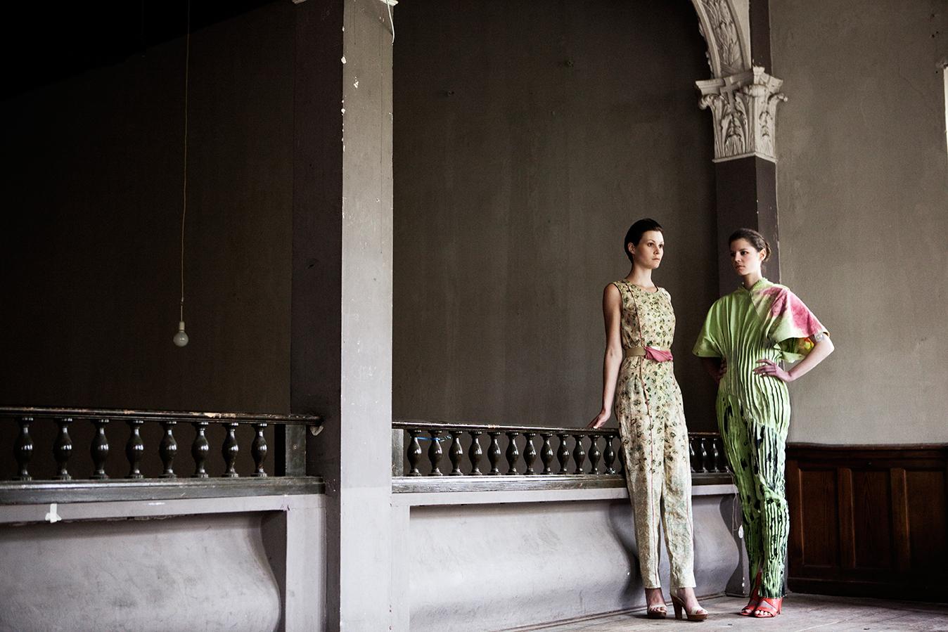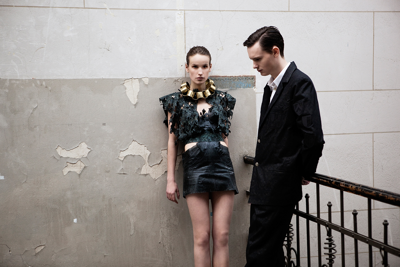 Im Spannungsfeld zwischen zwei Themen und zwei sehr unterschiedlichen Materialien wurden zwei Outfits erarbeitet.