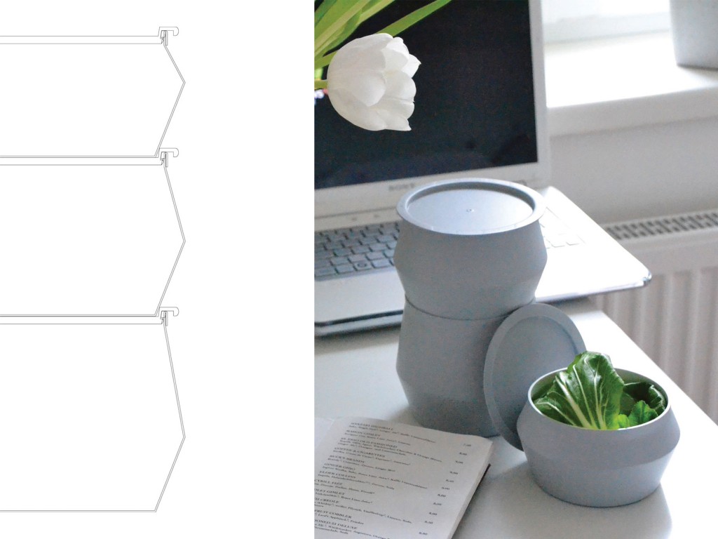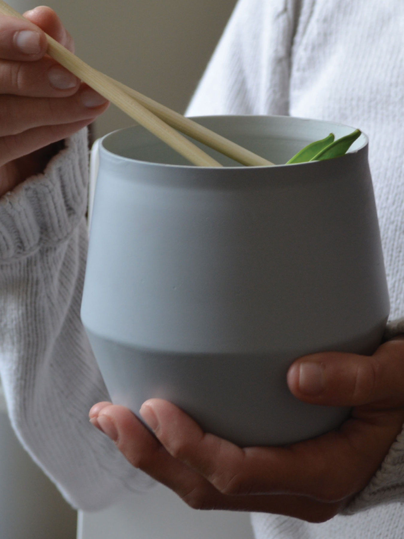 bin ermöglicht das mobile und dennoch kultivierte Essen unterwegs. Durch seine Ästhetik kann es zu Hause als sichtbares Aufbewahrungsbehältnis offen im Raum platziert werden.