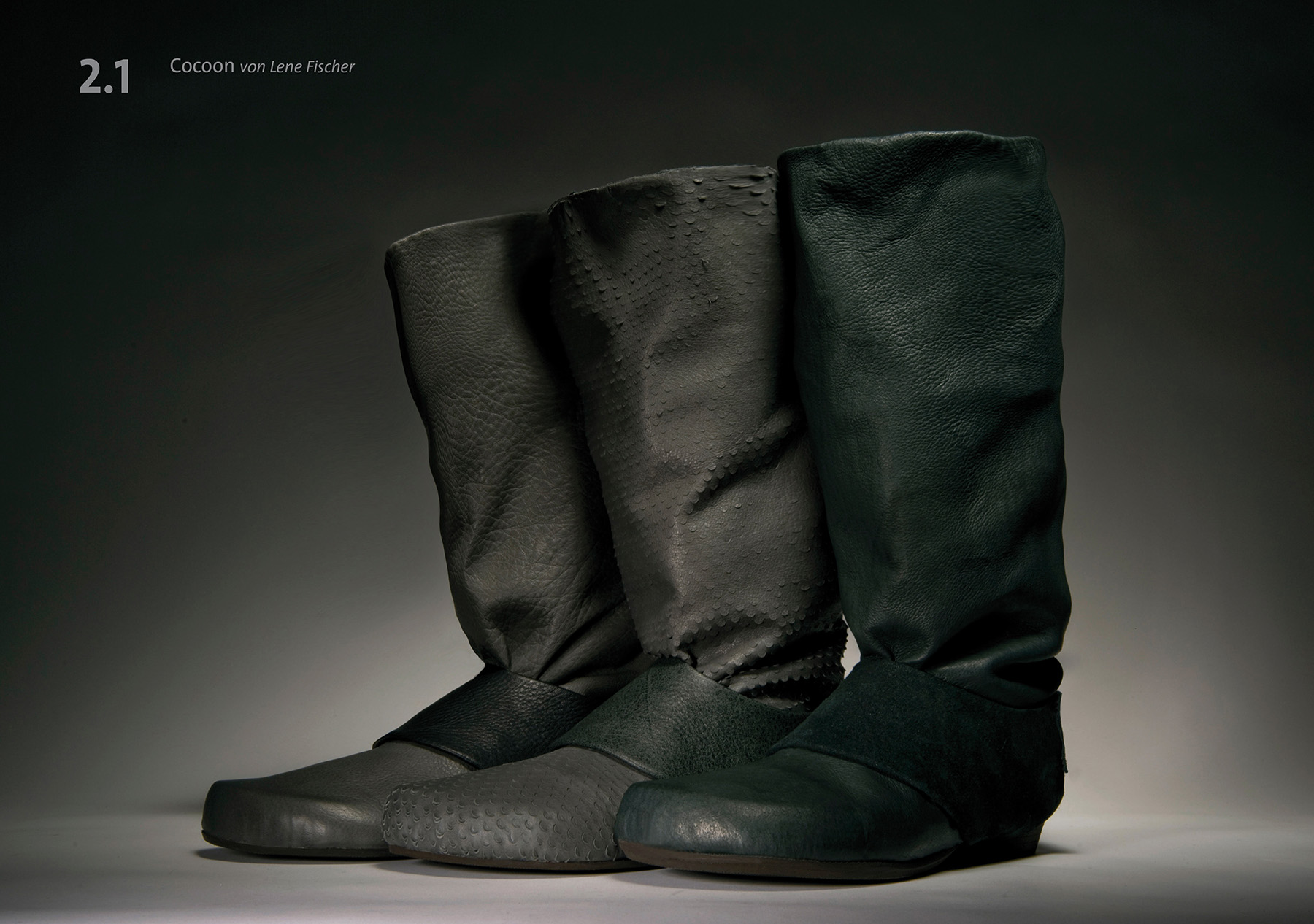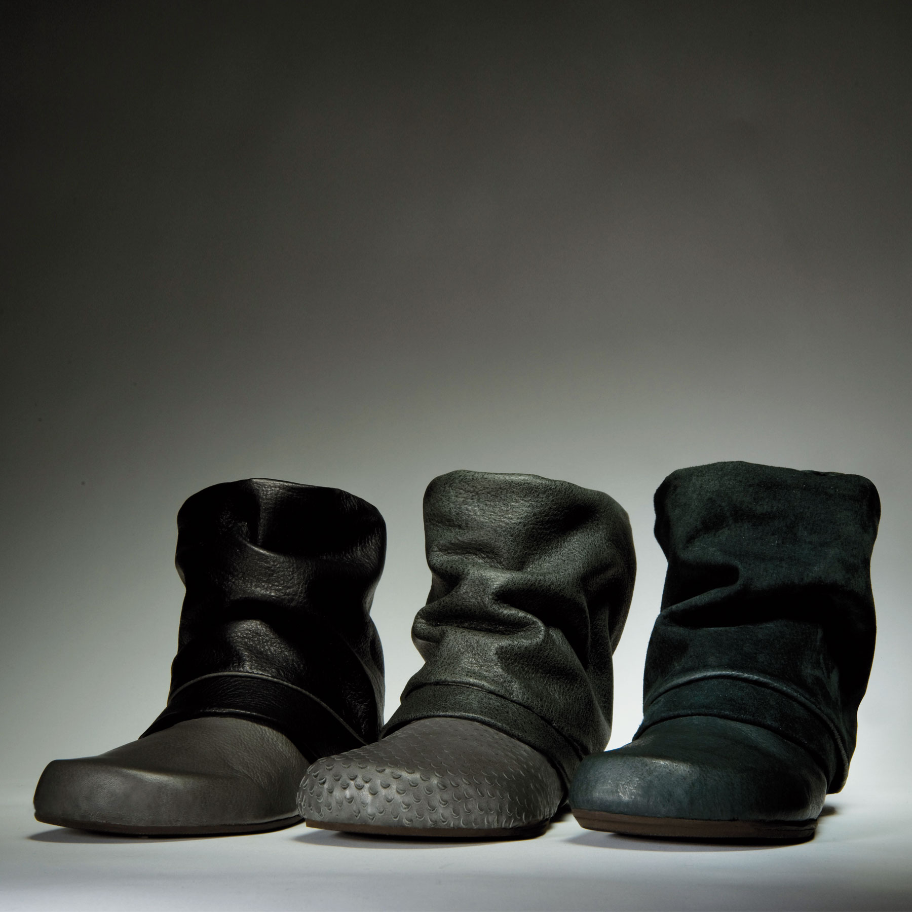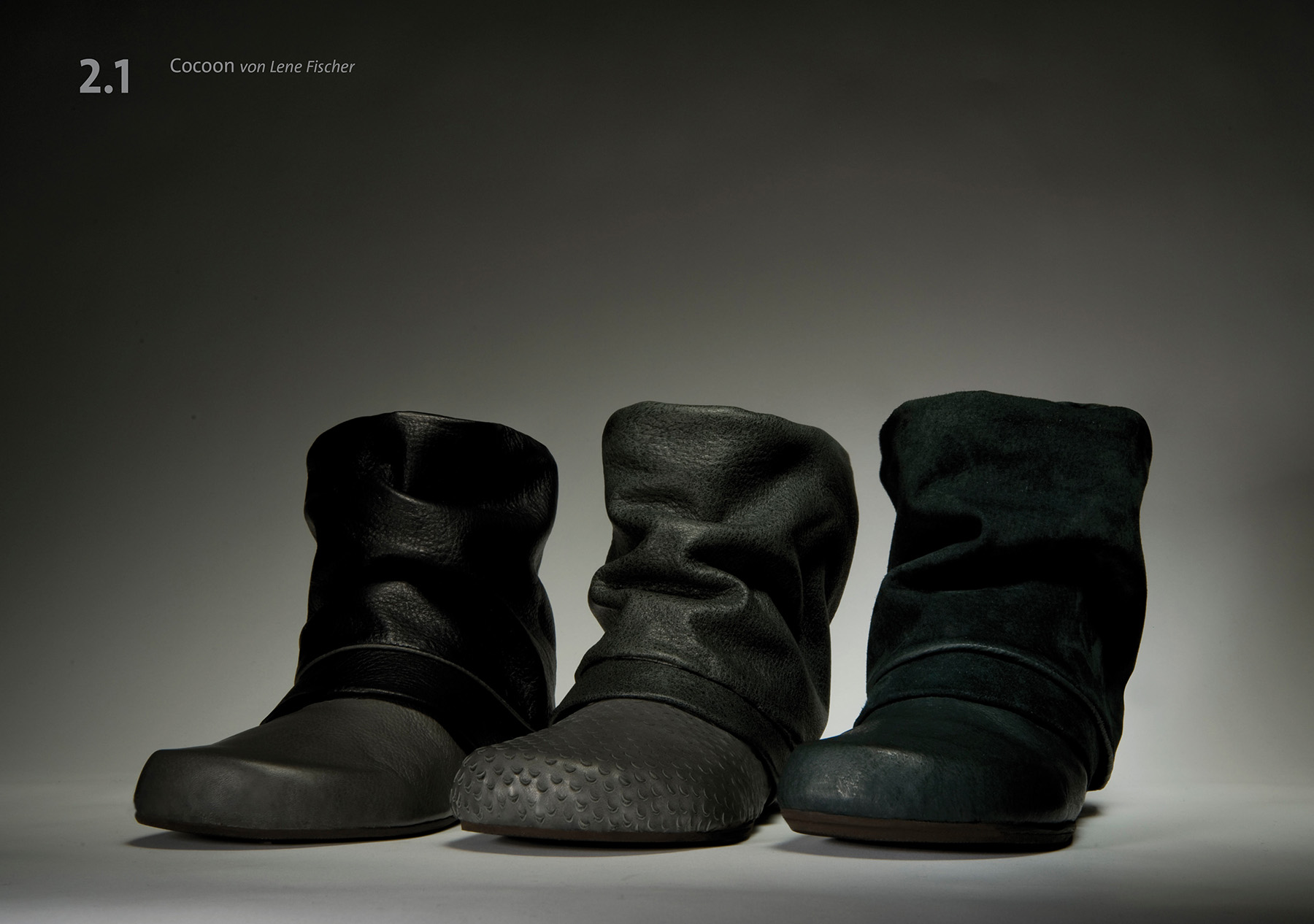 Cocoon hüllt seine Trägerin weich ein, schmiegt sich an Fuß und Bein an und ist dabei federleicht. Sein klares, schnörkelloses Design setzt die charakteristische Form des Bär-Leistens in Szene. Dies wird zusätzlich unterstrichen durch die dünne, zweigeteilte Sohle. Die flächige Gestaltung ermöglicht unzählige Materialvarianten und -texturen.