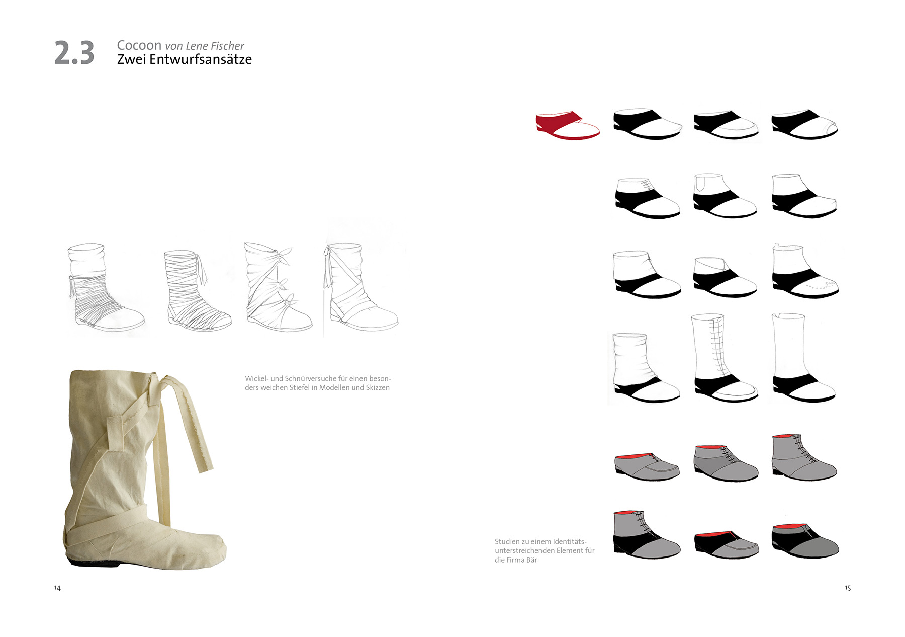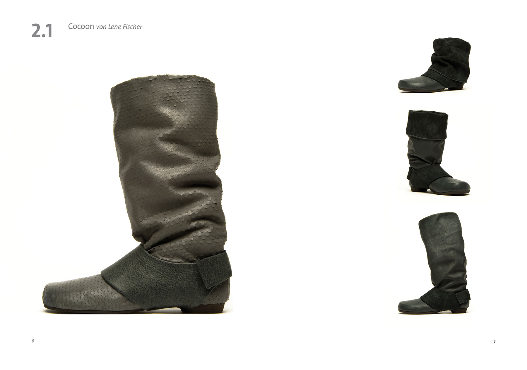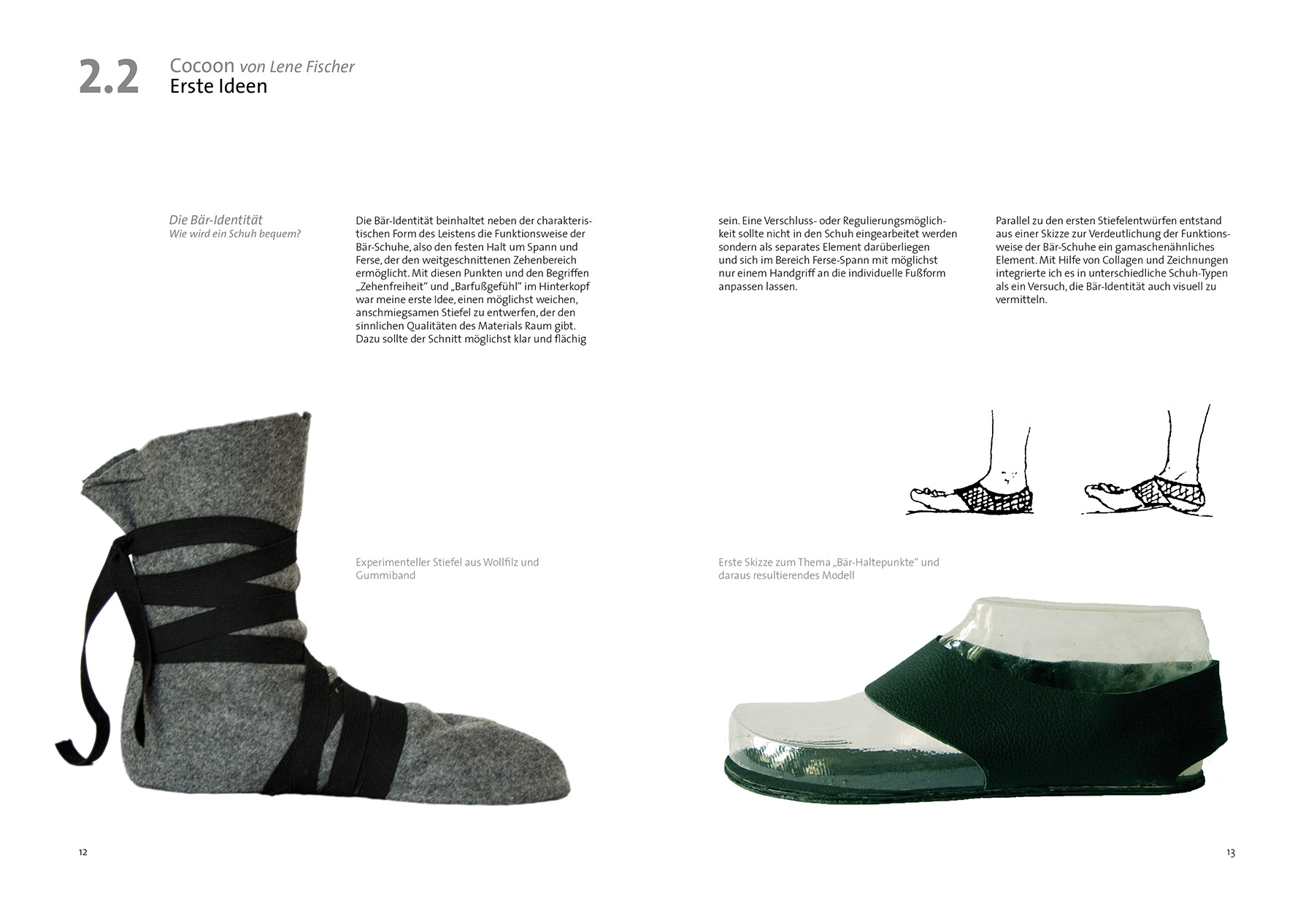 Cocoon hüllt seine Trägerin weich ein, schmiegt sich an Fuß und Bein an und ist dabei federleicht. Sein klares, schnörkelloses Design setzt die charakteristische Form des Bär-Leistens in Szene. Dies wird zusätzlich unterstrichen durch die dünne, zweigeteilte Sohle. Die flächige Gestaltung ermöglicht unzählige Materialvarianten und -texturen.