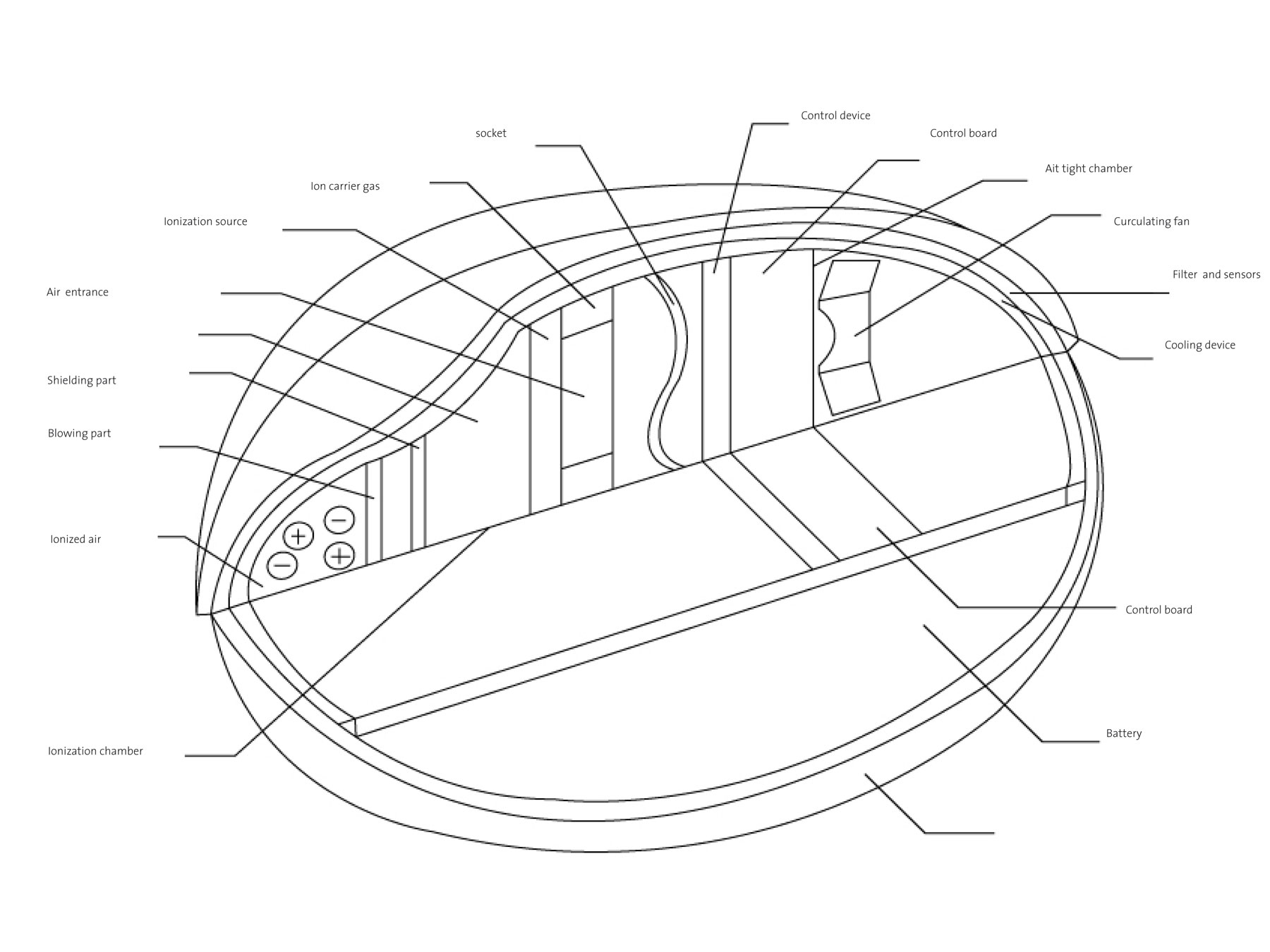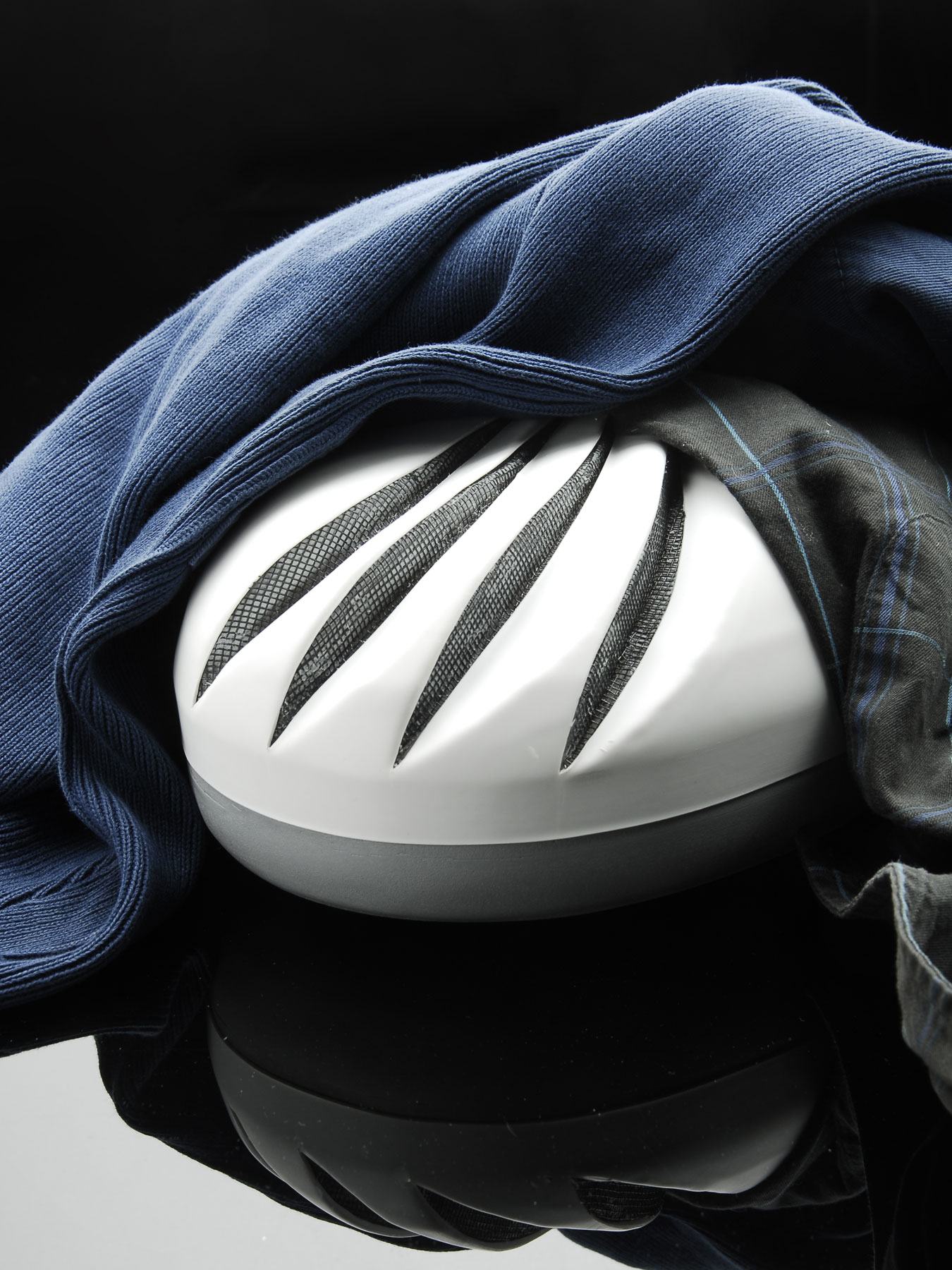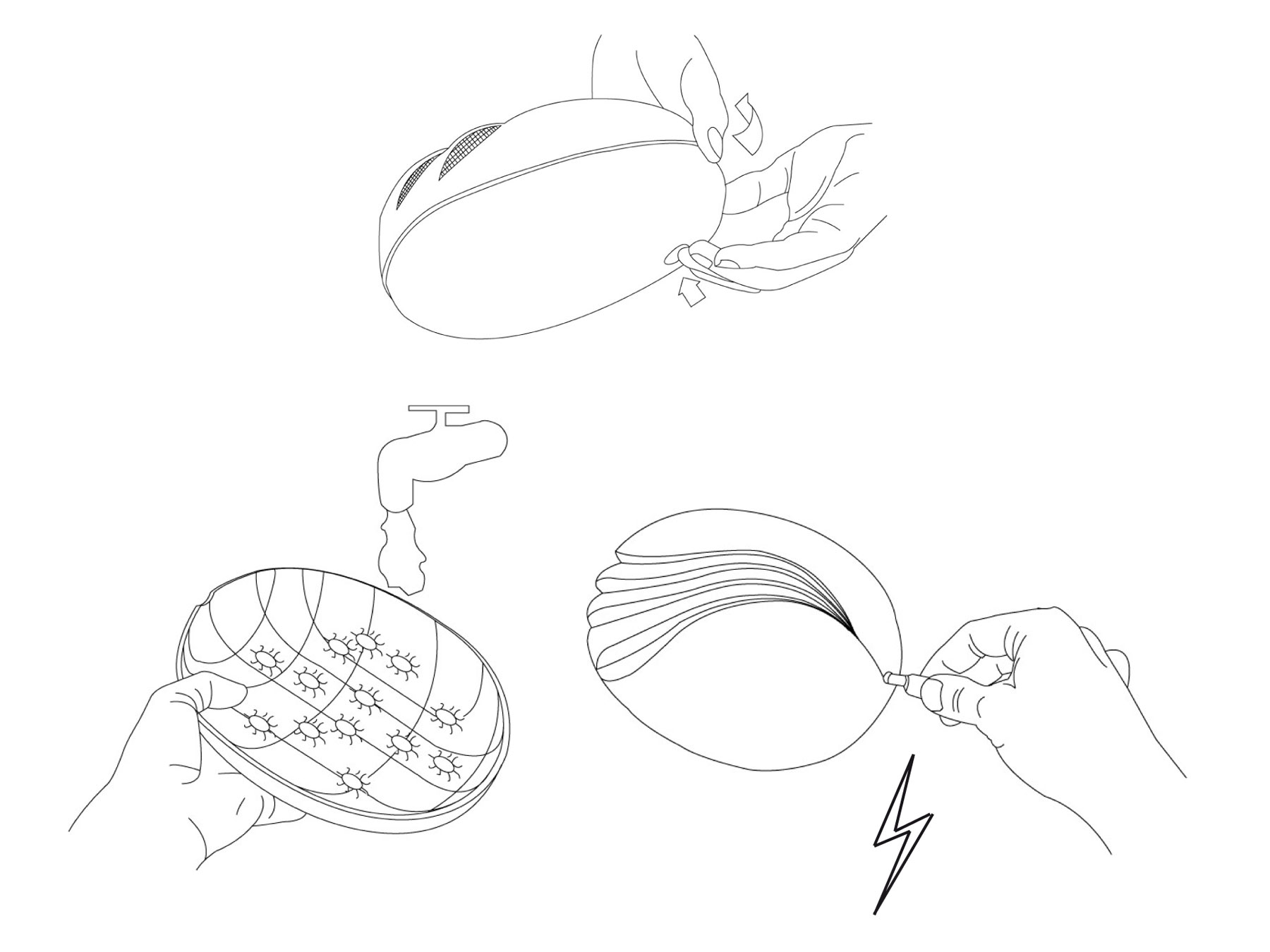 The concept is based on the technology of ionized air. Instead of running water through the textiles the ionized air will take the dirt out of the textile. No permanent container is needed. Instead the laundry can be washed right in the closet. Sab is a little objekt, similar to a soap bar that you put between your laundry. There it fulfills the task of cleaning the clothes by itself.