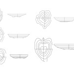 Beim Untersuchen der Makroaufnahmen einer Physalis bemerkte ich die interessanten Umrisse und fokussierte im weiteren Verlauf der Studie mein Augenmerk auf dieses Detail. Schrittweise gelang ich zu einem Schalenaufbau, bei dem ein Längsschnitt die Aufsicht auf die Schale darstellt und sich noch mehrere Mal in der Form wiederholt.