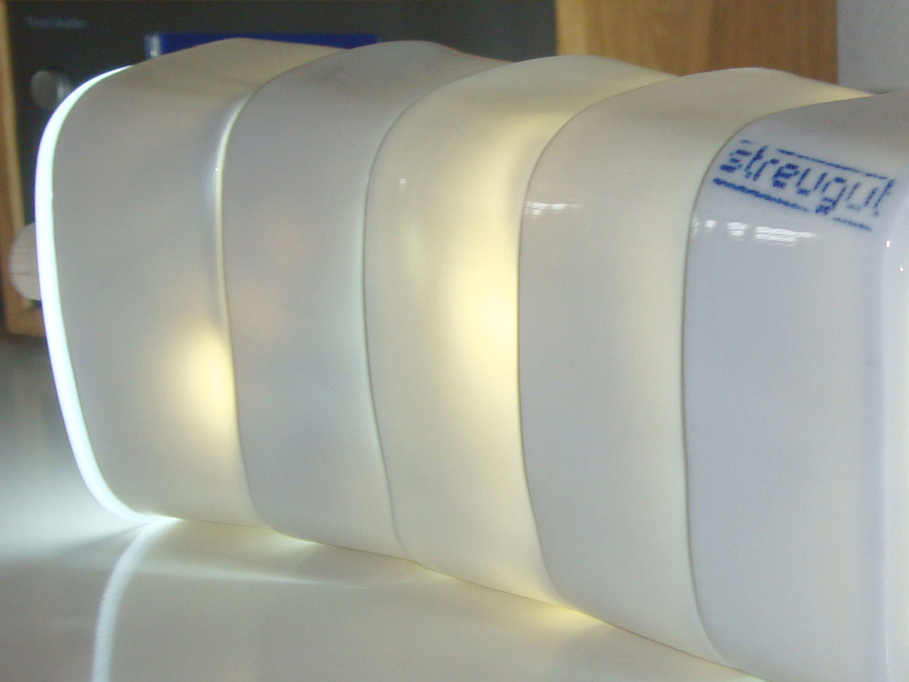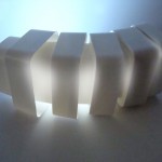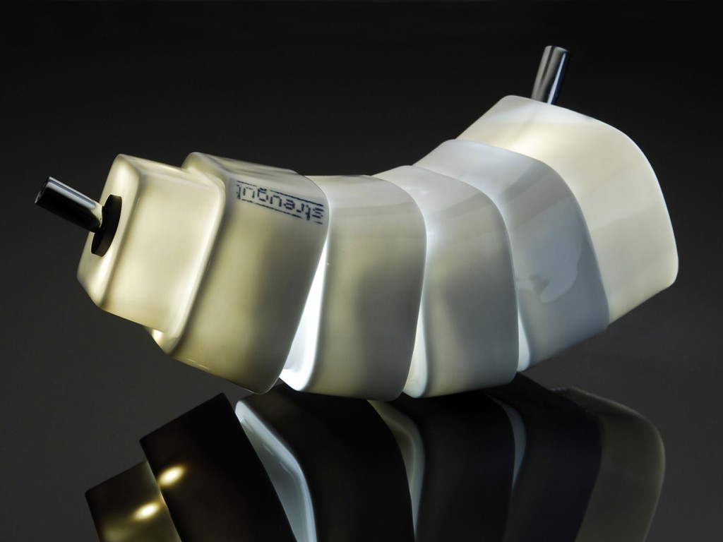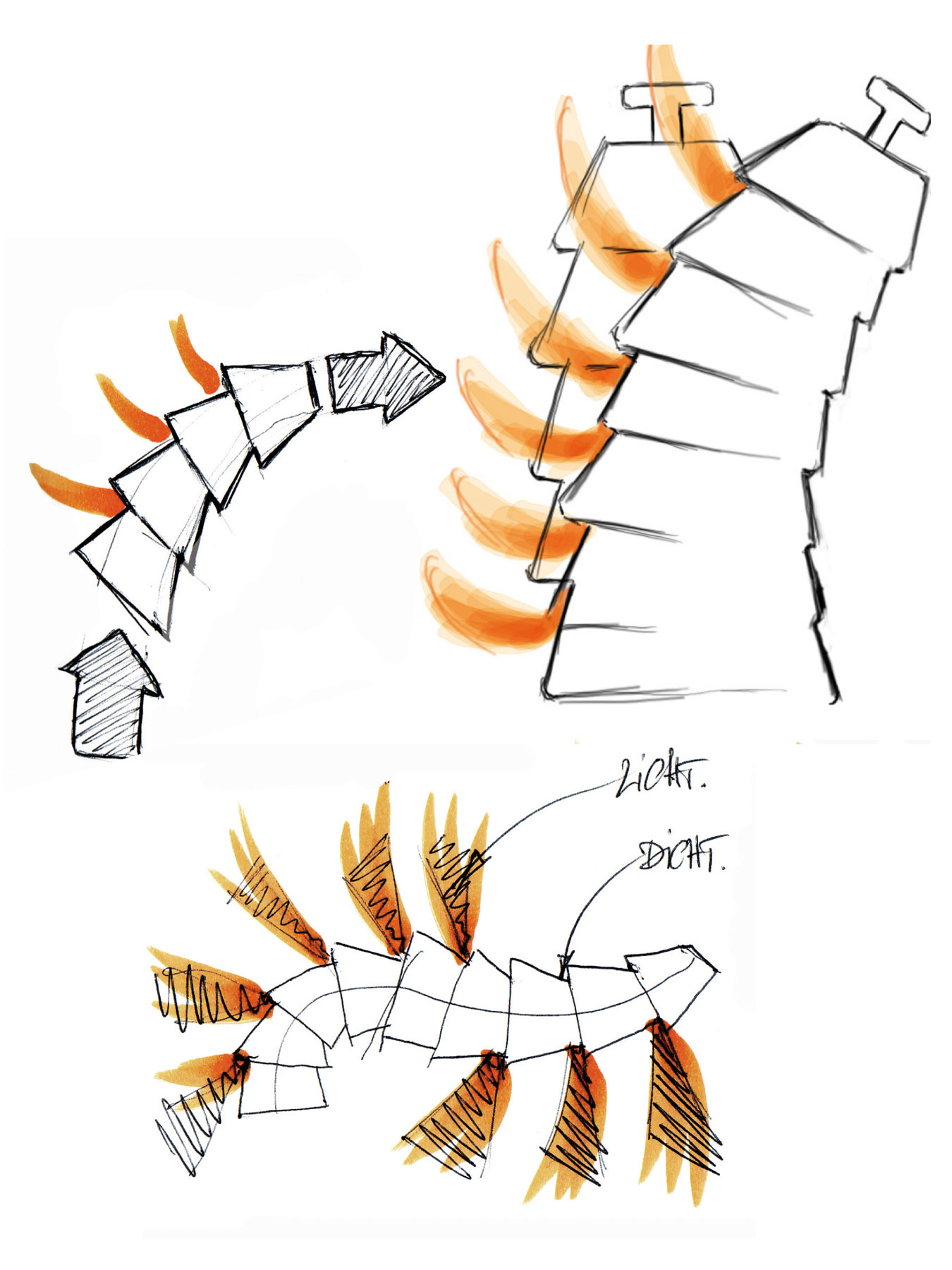 Während der Übertragung der Flexibilität des Birkenzapfens auf die Objektwelt wurden verschiedenste Ansätze sichtbar. Licht durch die Form der Lampe Streugut „streuen“ zu können, schien sinnvoll und interessant zugleich. So kann man das Licht dieser Leuchte manuell dimmen und die Lampe setzen, wie man es mag.