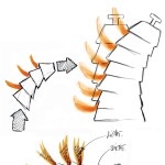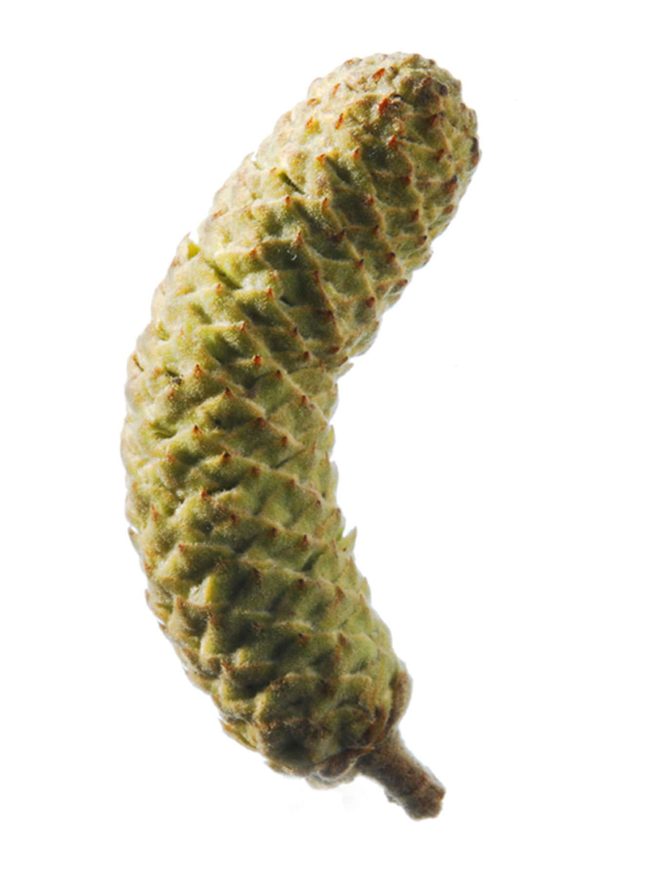 Bei der näheren Betrachtung des weiblichen Nusszapfens, der Frucht der Birke wurde sichtbar, dass die winzigen Fruchtblätter helixial auf der flexiblen Mittelachse angeordnet sind, was eine enorme Beweglichkeit des gesamten Objektes zur Folge hat. Eine Helix ist ein räumliches Gebilde – eine Kurve, die sich mit konstanter Steigung um den Mantel eines Zylinders windet.