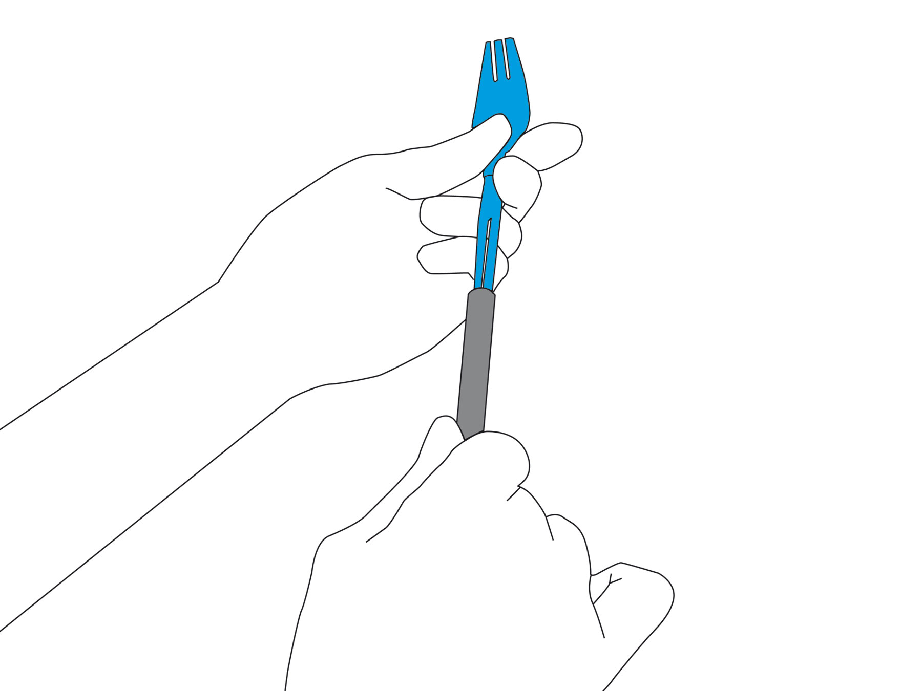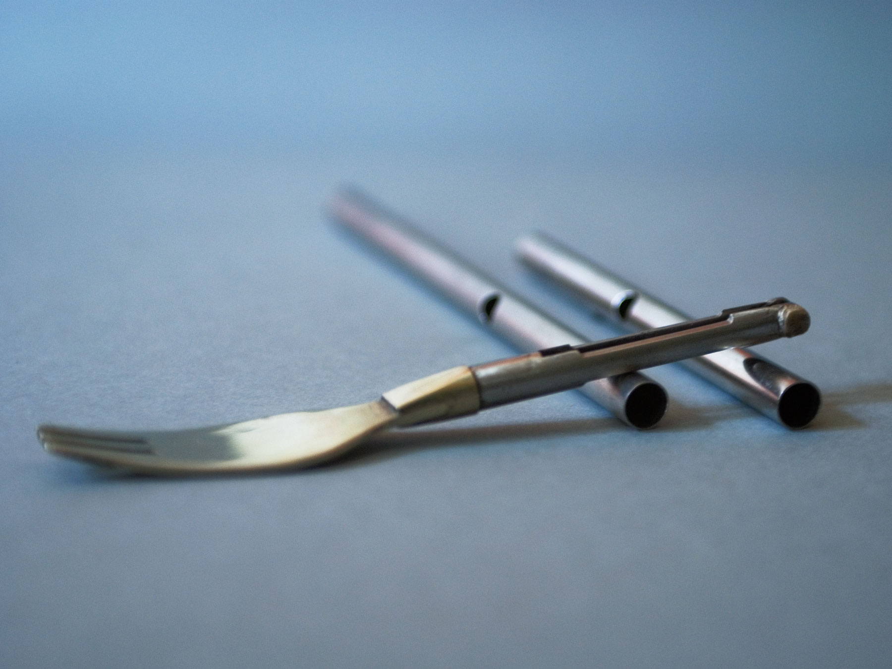 Messer, Gabel, Löffel sind bewusst klein gehalten und helfen dem Benutzer, sich beim Essen Zeit zu lassen – sein Mahl bewusst zu genießen. Die auswechselbaren Griffe ermöglichen es eine besondere Situation oder eine besonders aufwendig zubereitete Mahlzeit auch optisch hervorzuheben. Einfach den Kunststoffgriff durch einen edlen, polierten Edelstahlgriff austauschen und dem Gekochten zusätzlich einen besonderen Flair verleihen.