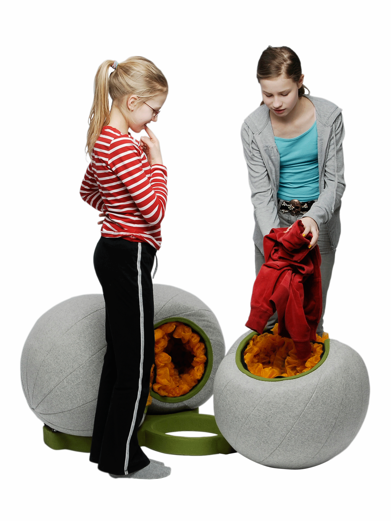 Mit WinWin wandert die Waschmaschine ins Wohnzimmer. WinWin braucht weder Wasser noch Strom, denn unsere schmutzige Kleidung schließt den Kreislauf der Reinigung. Außen weich gepolstert und als Sitzmöbel getarnt, verbirgt sich in ihrem Innern ein raffiniertes Ökosystem, welches sich der Wäsche annimmt. Wie alle Lebewesen produzieren die Mikroorganismen bei Aktivität Wärme. Wenn das Sitzmöbel befüllt und die Mikroorganismen aktiv sind, wärmt es den Sitz. Der äußere Bezug ist mit thermochromer Farbe bedruckt, sobald der Sitz abkühlt zeigt eine Farbveränderung an, dass der Reinigungsprozess abgeschlossen ist.