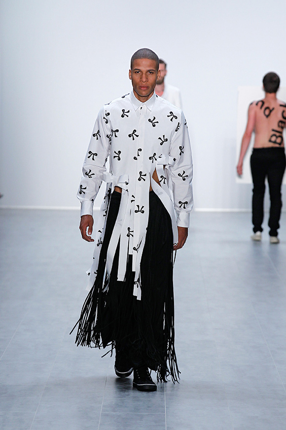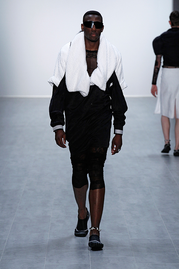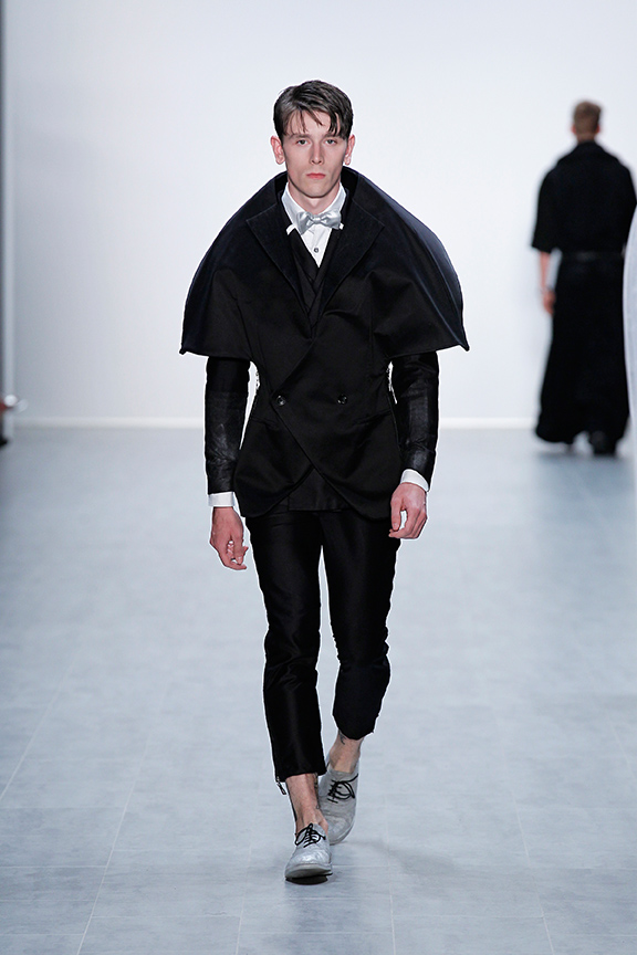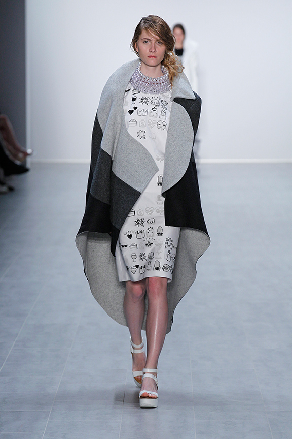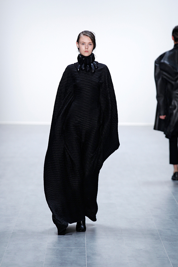 Bekleidung anderer Kulturen ist faszinierend. Die Art und Weise des Umgangs mit Form, Materialund Herstellung von Bekleidung in anderen kulturellen Räumen ist Ausgangspunkt vieler modischer Kollektionen. Bekleidung anderer Kulturen ist somit ein Teil unseres kulturellen Bekleidungsarchivs. Sie wird dann zum Teilhaber an einem Prozess von modischem Neu-Entstehen, wenn wir als Designer Zusammenhänge zwischen vermeintlich nicht zusammenhängenden Formen aufzeigen und die Konfrontation mit der Bedeutung von Existentem in seiner Neuinterpretation suchen. Jeder Studierende entwickelte zwei Outfits, in denen sich die westliche mit einer afrikanischen Kleiderkultur in einer modischen Neuinterpretation verbinden. Ein drapiertes Element wurde mit einem konstruierten Element eines Sakko / Blazer verknüpft. Bei freier Materialwahl wurden Kontraste in der Farbgebung durch das Arbeiten mit Schwarz, Weiß und Grautönen erzeugt.