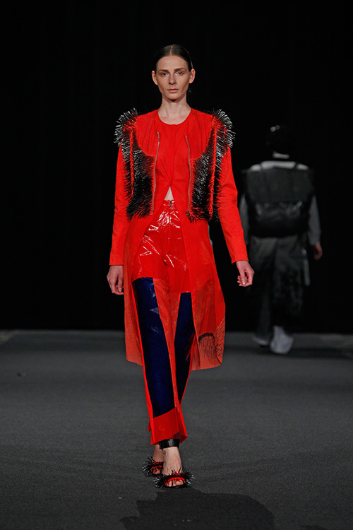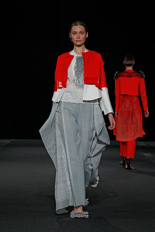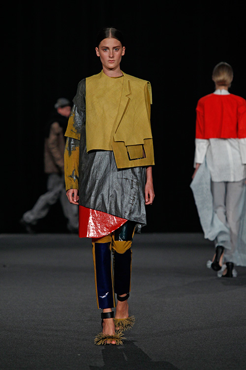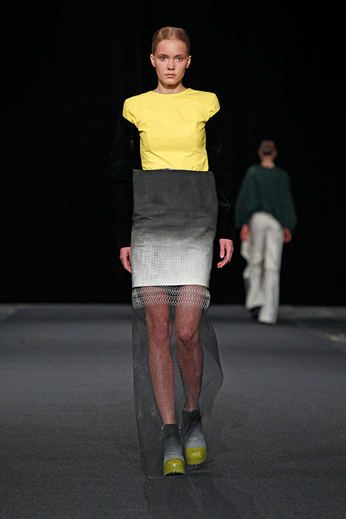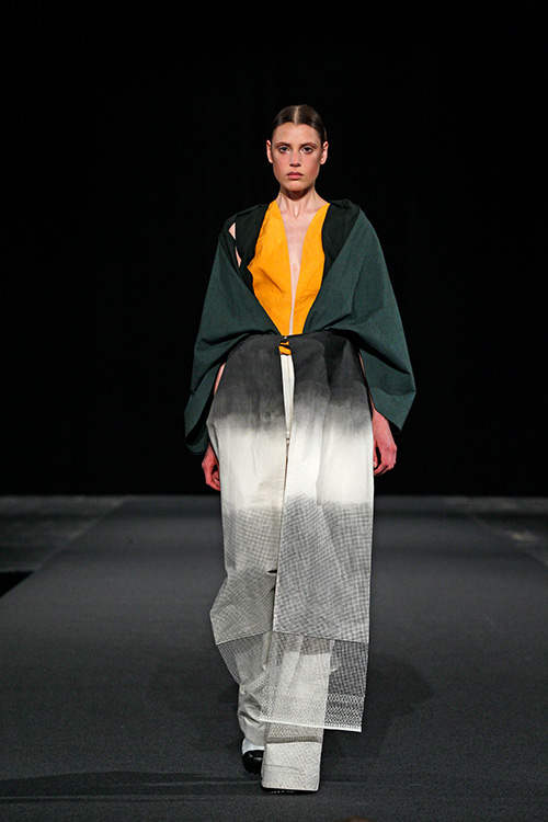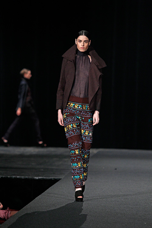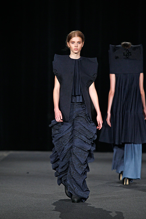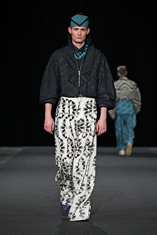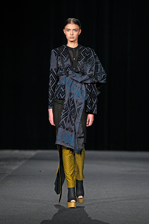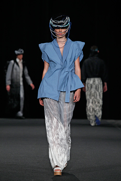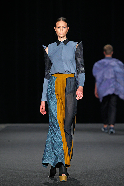 Die Teilnehmer in diesem Projekt setzten sich mit diesem von der westlichen Welt nahezu unbeeinflussten Kulturkreis auseinander und öffneten sich somit unbekannten Farb- und Klangwelten, lernten Materialien, Techniken, Stile und Eigenarten kennen und recherchierten wie, wodurch und wozu diese entstanden sind. Das Ergebnis dieser Recherche wurde zum Ausgangspunkt des eigenen Entwurfs und fand durch Übertragung in unseren zeitgenössischen Kontext seine Form. Als »Trägermaterial« diente Nesselstoff, der durch Bedrucken, Verfremdung, Ver- und Umformung den Transfer unterstützte.