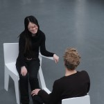 Der experimentelle Aufbau der beiden ungewöhnlichen Sitze, zwingt die Sitzenden zu gespiegelten Handlungen: Die einseitig vorhandene Armlehne ermöglicht es nur, an einer bestimmten Position etwas abzulegen. Stellt der eine also sein Glas ab, so wird es der andere ihm gleich tun, nur eben seitenverkehrt. Die zur einen Seite abfallende Sitzfläche lässt es nur zu, das eine bestimmte Bein über das andere zu schlagen, ohne dabei aus der Balance zu kommen, so dass auch diese Handlung vom Gegenüber in gleicher Weise vollzogen werden muss. Durch die räumliche Nähe und den Anstoß zu gespiegelten Bewegungen werden die Sitzenden mit ihrem Gegenüber konfrontiert – es gibt kein Ausweichen. Pflicht zur Konversation oder die Möglichkeit sich selbst in seinem Gegenüber zu erkennen?