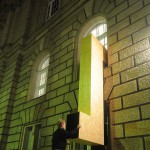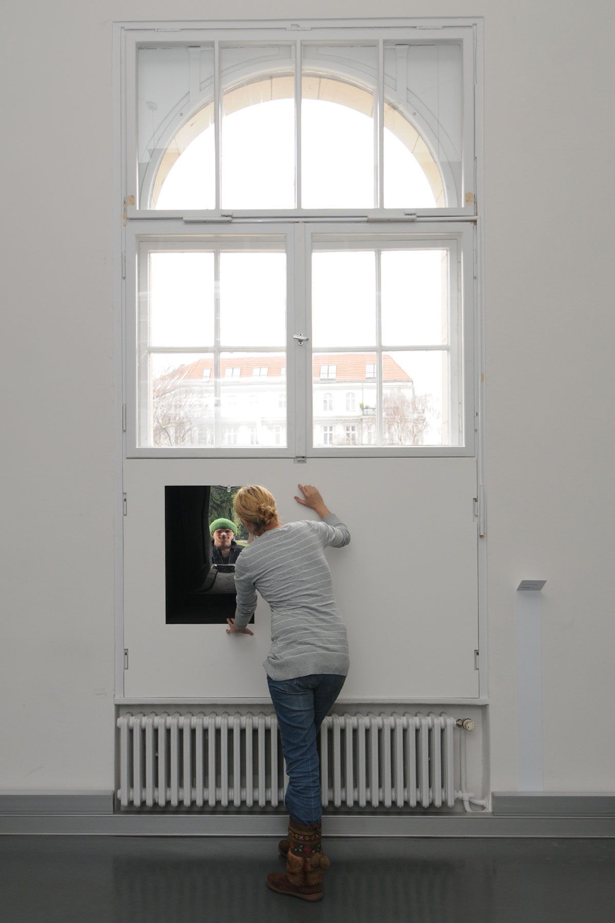 Durch ein an der Fassade installiertes Periskop können sowohl ankommende Gäste als auch Passanten von der Straße aus einen direkten Einblick in die Räumlichkeiten des Salonabends bekommen.
