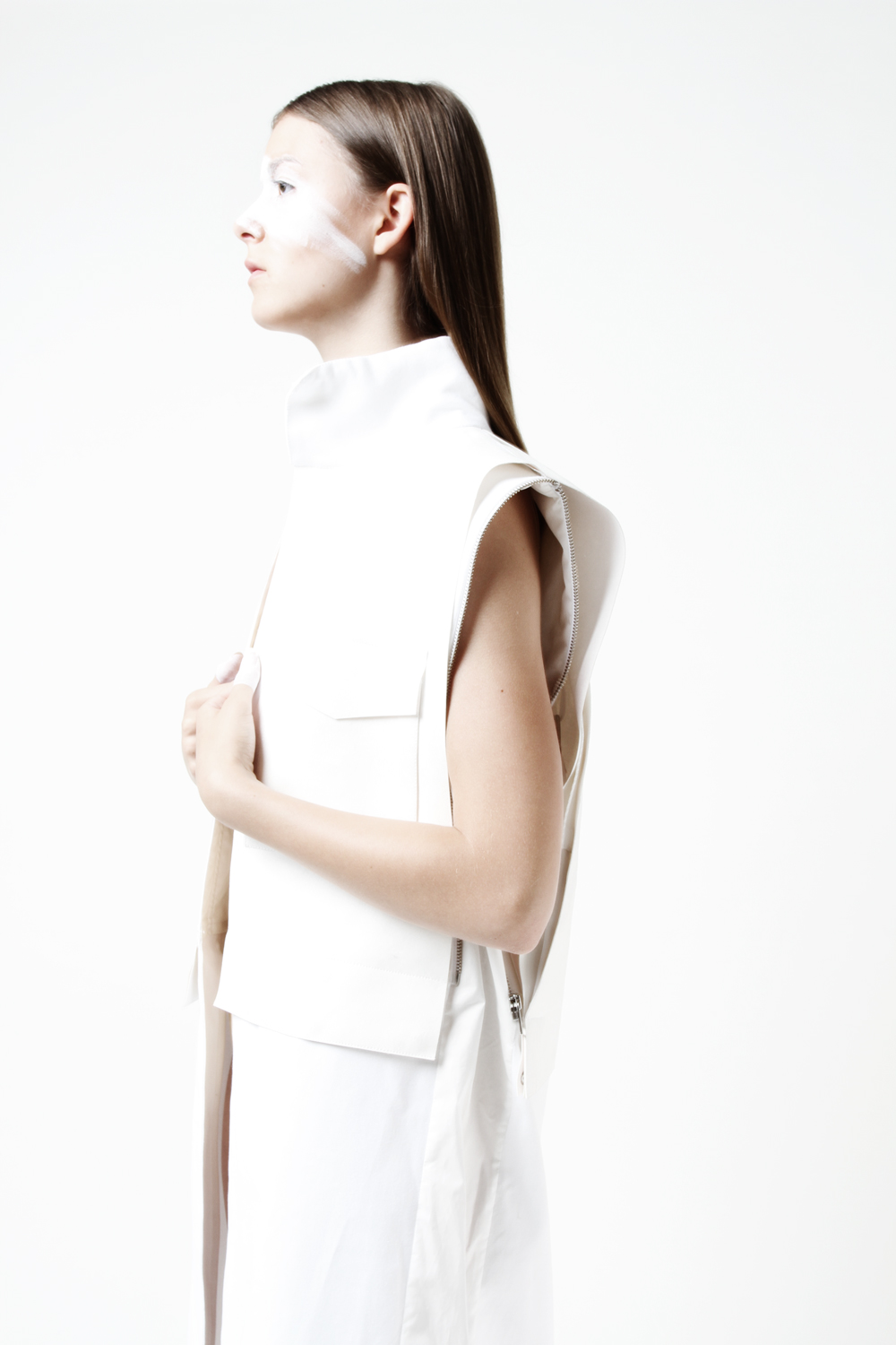 Exploring the difference between looking strong and being strong. A girl, a woman, taking on the appearance of A fighter, a boxer, all muscles. Protection. You can act tough and intimidating, puff yourself out, strut around, inflict fear; but this is not bravery, it is not true strength, this is a front. This is Bravado. Look through the gaps in this hard exterior shell. Glimpse the person within. Daring and fearless. Real bravery comes from hard work, courage to change and stand up to your convictions, even when it is difficult and everything seems to be fighting against you. Don’t be afraid to be different.