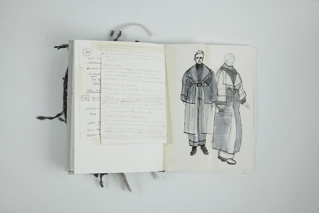 Welche Geschichte erzählt er uns? Materialität, Silhouetten, Funktionalität, Wertigkeiten, Verarbeitung, Identität – das Bennen und Erkennen dieser formellen und theoretischen Aspekte dient als Recherche für die gestalterische Grundlage des eigenen Konzeptes. Sich zu positionieren und einen wegweisenden Ausdruck der eigenen Zeit finden – Mode schaffen.