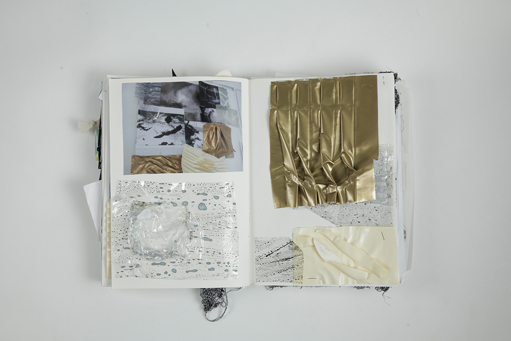 I’ve tried to unite and interpret the two worlds in fabric experiments, all of them achieved trough welding the material (welding is often used in rain garments as not to pierce the fabric and hence create possabilities for water to come in). In each piece, I’ve tried to create a clash between escapism, simplification and actual reality, as a way of dealing with the topic of romantic stereotypes and collective awareness.