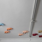 Die Ausstellung „Cutting&Editing“ umfasste Bekleidungsentwürfe sowie kurze Videos, welche in einem Kooperationsprojekt zwischen dem Fachbereich Modedesign und dem Studiengang Bewegtbild entstanden waren. Festgepinnt auf großen Boards wirkten die Outfits wie Filmstills, welche den projizierten Videos entsprungen waren. Aufgrund des interdisziplinären Bestandteils, der die Projektteilnehmer zu neuen Gestaltungslösungen inspiriert hat, fanden wir diese Ausstellung besonders reizvoll.