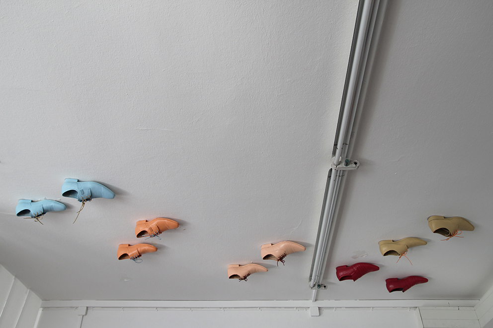 Im Nesselraum wurden Probeteile ausgestellt, die während der Semesterprojekte entstanden waren, um Bekleidungsideen im günstigen Nessel-Material zu testen. Die Zuschauer durften diese Kleidungsstücke anprobieren und sich damit fotografieren lassen. So erhielten sie einen ganz persönlichen und spielerischen Bezug zu den Arbeiten der Studierenden und konnten das Plaroid auch mit nach Hause nehmen, um sich später zu erinnern.