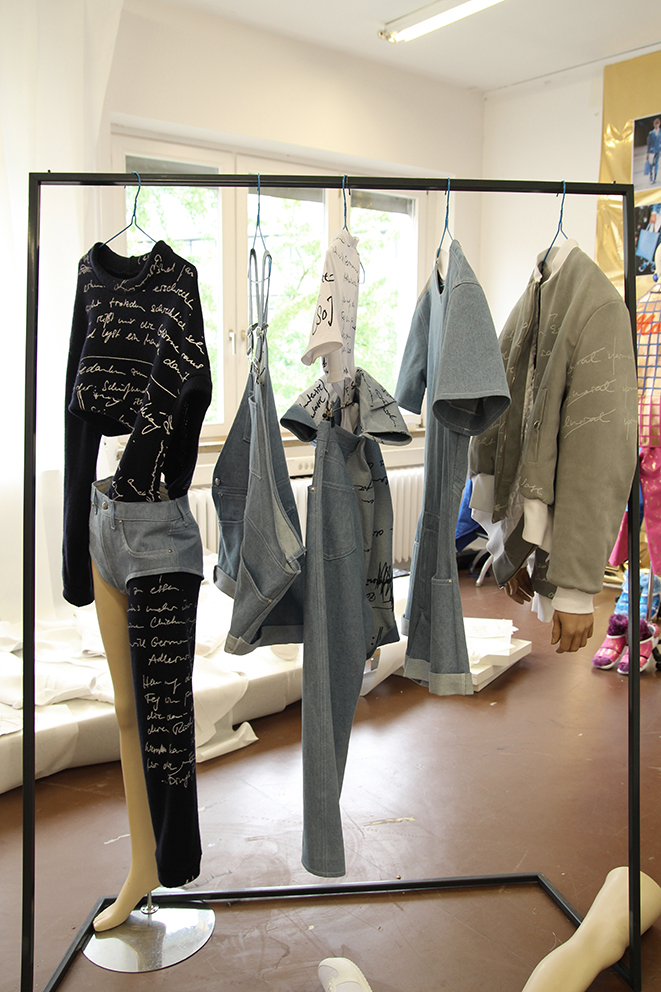 Ausgangspunkt für die Kollektionen des experimentellen Studienprojektes ‚I am you and you are me too‘ war die kritische Auseinandersetzung der Studierenden mit ihrer eigenen gestalterischen Praxis. Inhaltliche und ästhetische Schwerpunkte der vorangegangenen Arbeiten wurden analysiert und in einen globalen Designkontext positioniert. Die daraus entstandene Narrative war die Grundlage für die entstandenen Kollektionen, deren Arbeitsverlauf und Resultate in Zusammenarbeit mit i-D Deutschland dokumentiert wurden.