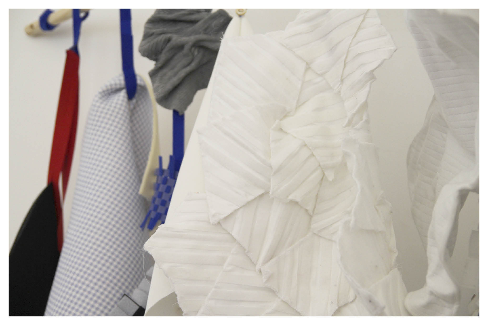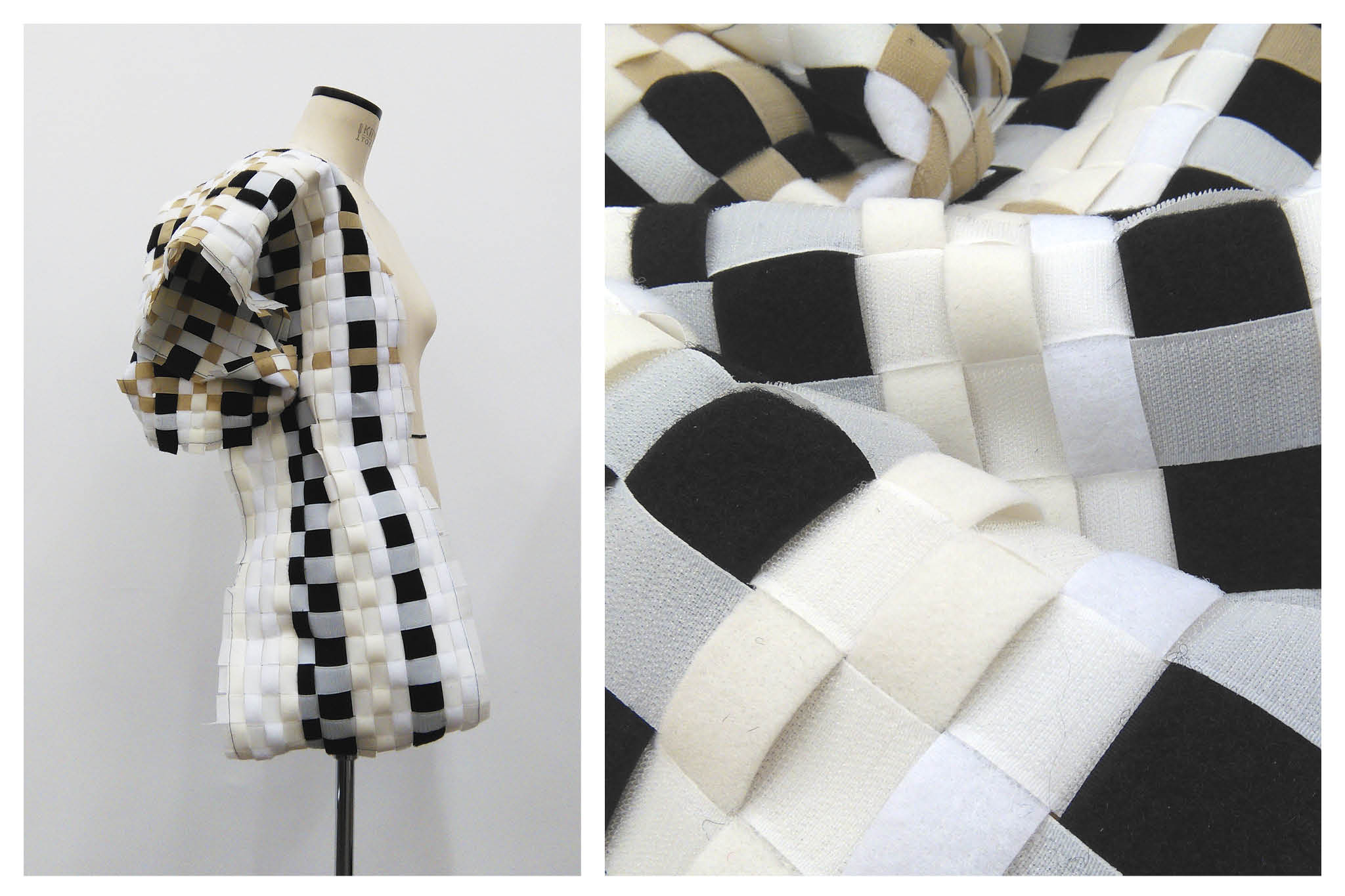 Das Ziel dieses Projektes ist es, ein modulares, erweiterbares Textilsystem zu entwickeln, welches sich schnell zusammensetzen lässt und auch im getragenen Zustand weiter verändert werden kann. Wie ein ‘Modespiel’ fordert es den Nutzer auf eine spielerische Art, lässt ihn individuelle kreative Lösungen finden und wird zum Medium für Nutzer-zu-Nutzer Kommunikation. Mode wird dann durch direkte Interaktion verhandelt und wird zur Plattform für den Austausch von Ideen. Statt auf ein Bild reduziert zu werden, wird die Mode zur taktilen Erfahrung.