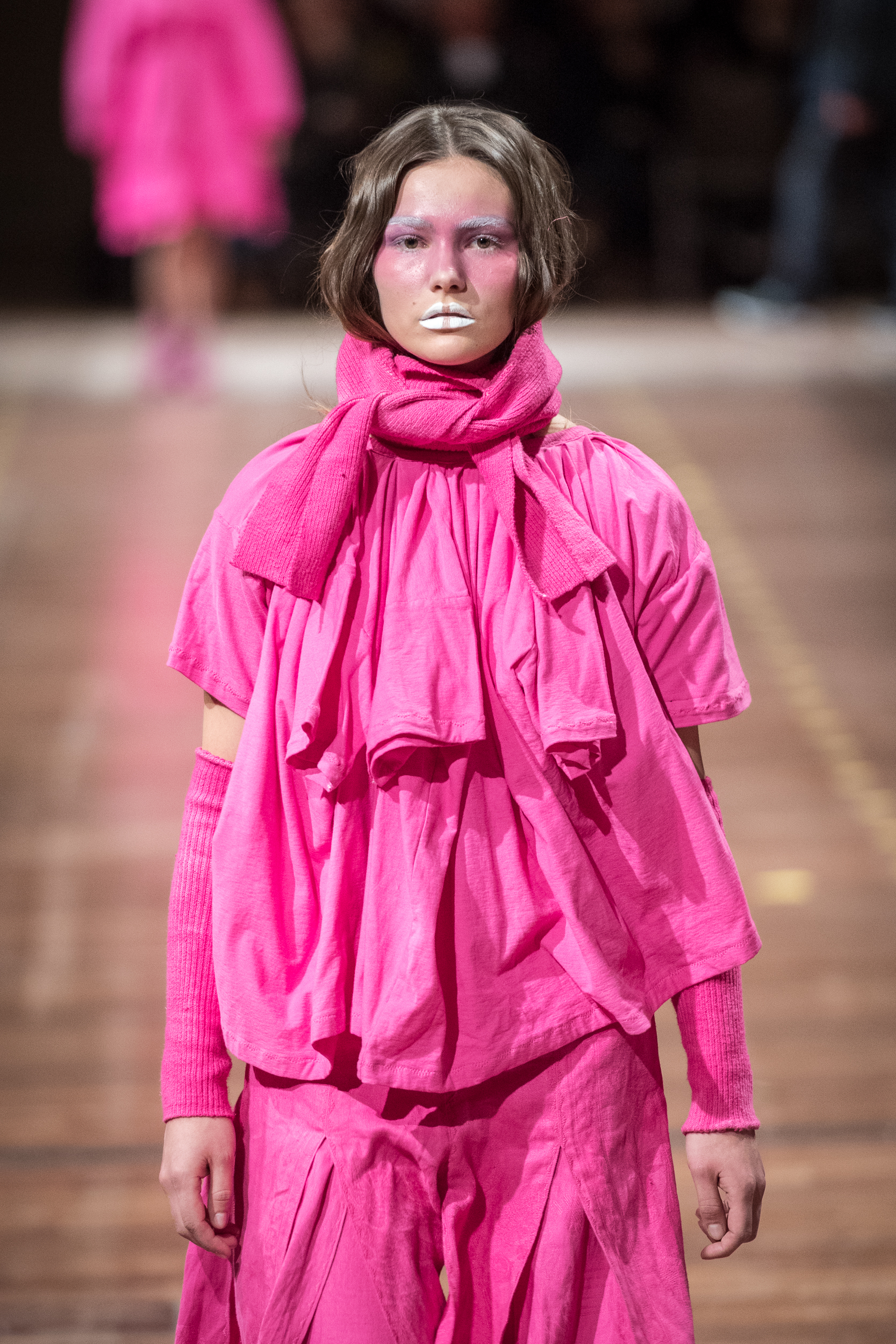 Von dem von jedem Studenten zunächst individuell zu definierenden Konzept der „Festtagskleidung“ ausgehend, soll zeichnerisch eine Kollektion aus 10 Silhouetten entstehen, von der zwei Silhouetten in Material gefertigt werden.