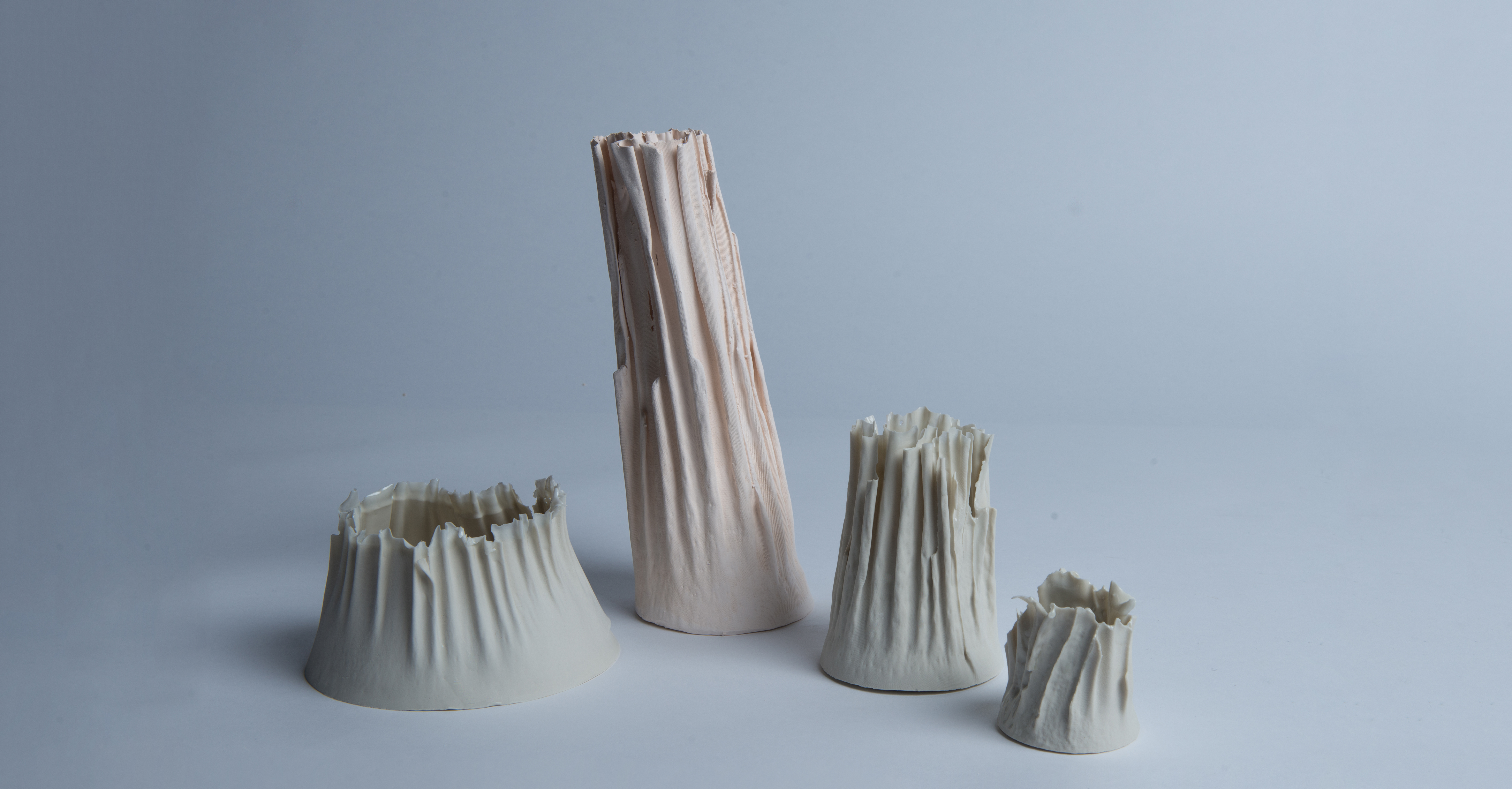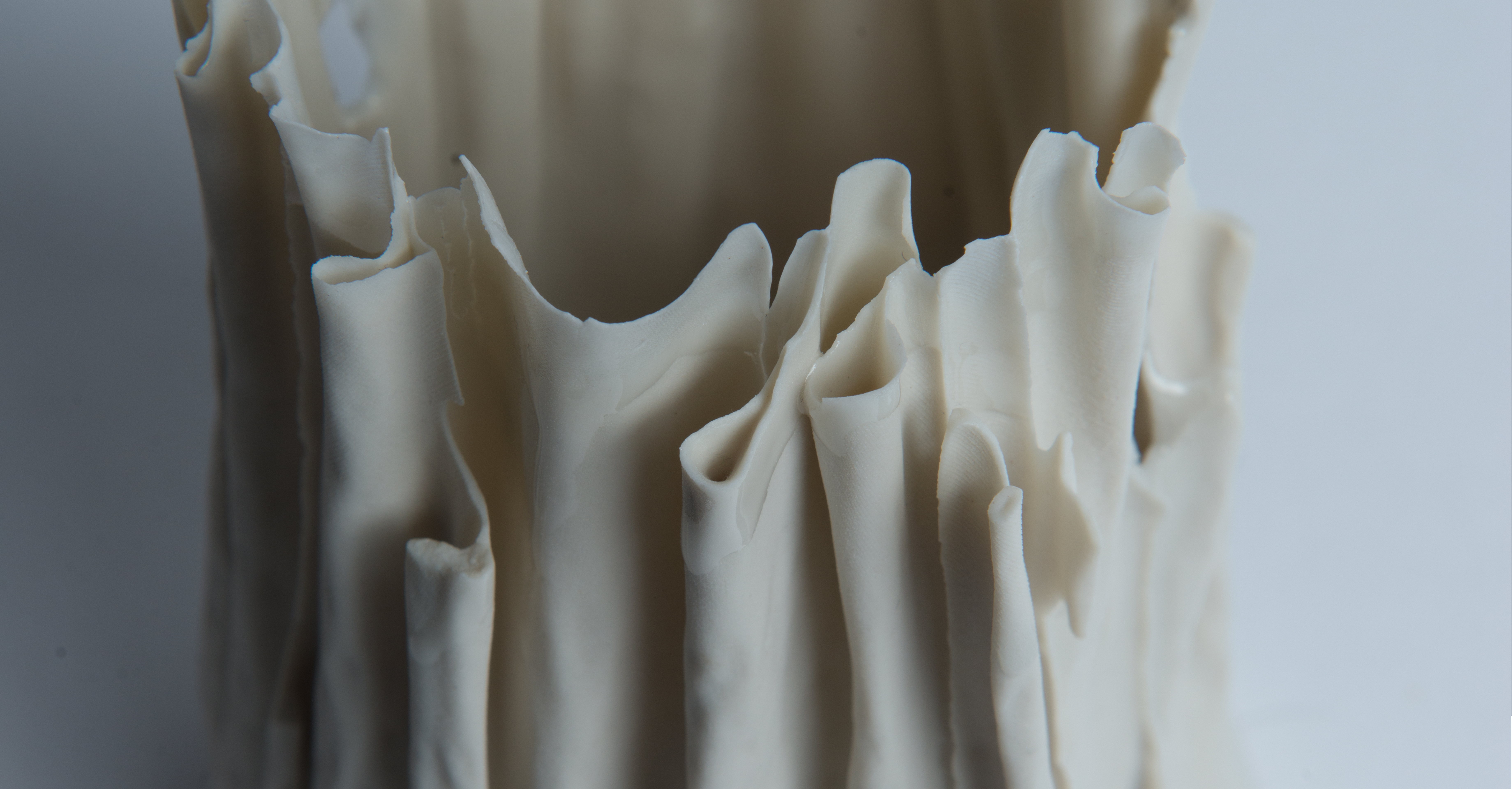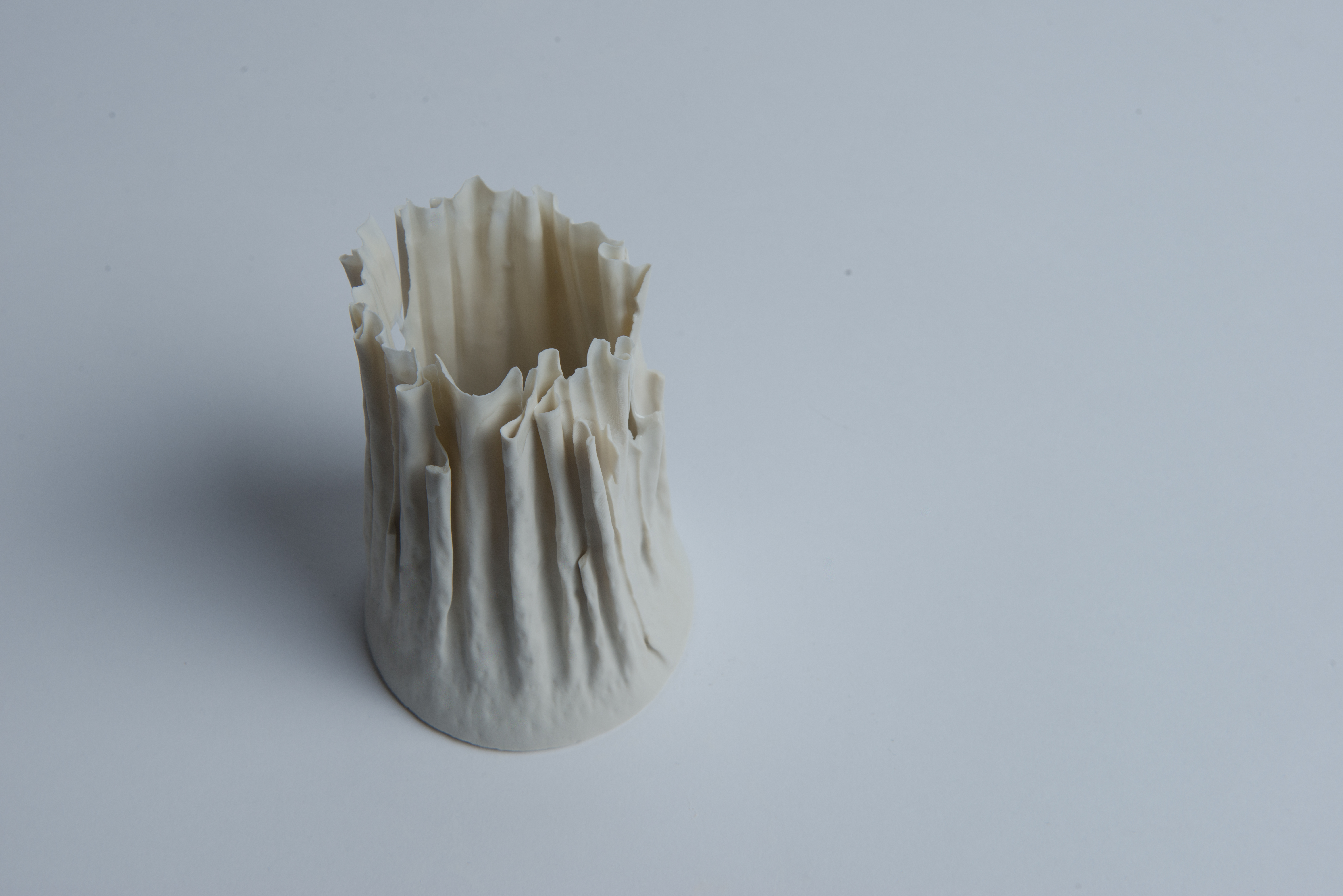 Cortina is a piece that was created during the research for new methods of mold building in ceramics. Reinterpreting the traditional methods used in ceramics I created a machine that is able to produce flexible and flowing shapes. Although the surface structure of Cortina is the main eye-catcher, the machine is actually capable of creating a variety of shapes and surfaces.