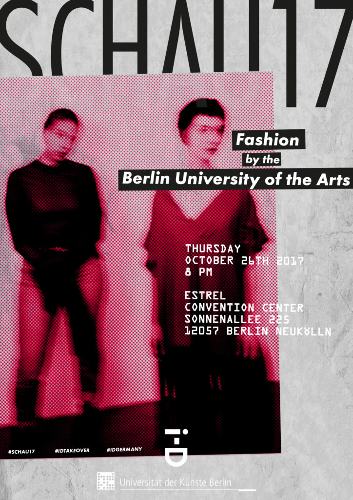 On October 27, 2017, the fashion design students, both undergraduate and masters, will premiere their final collections at Estrel Convention Center for an audience of 1000 and a selection of fashion industry professionals. Together with i-D under the direction of Alexandra Bondi di Antoni, the Institute for experimental fashion and textile design will present its newest design. This year again Patrick Koch developed the stage design together with the institute.