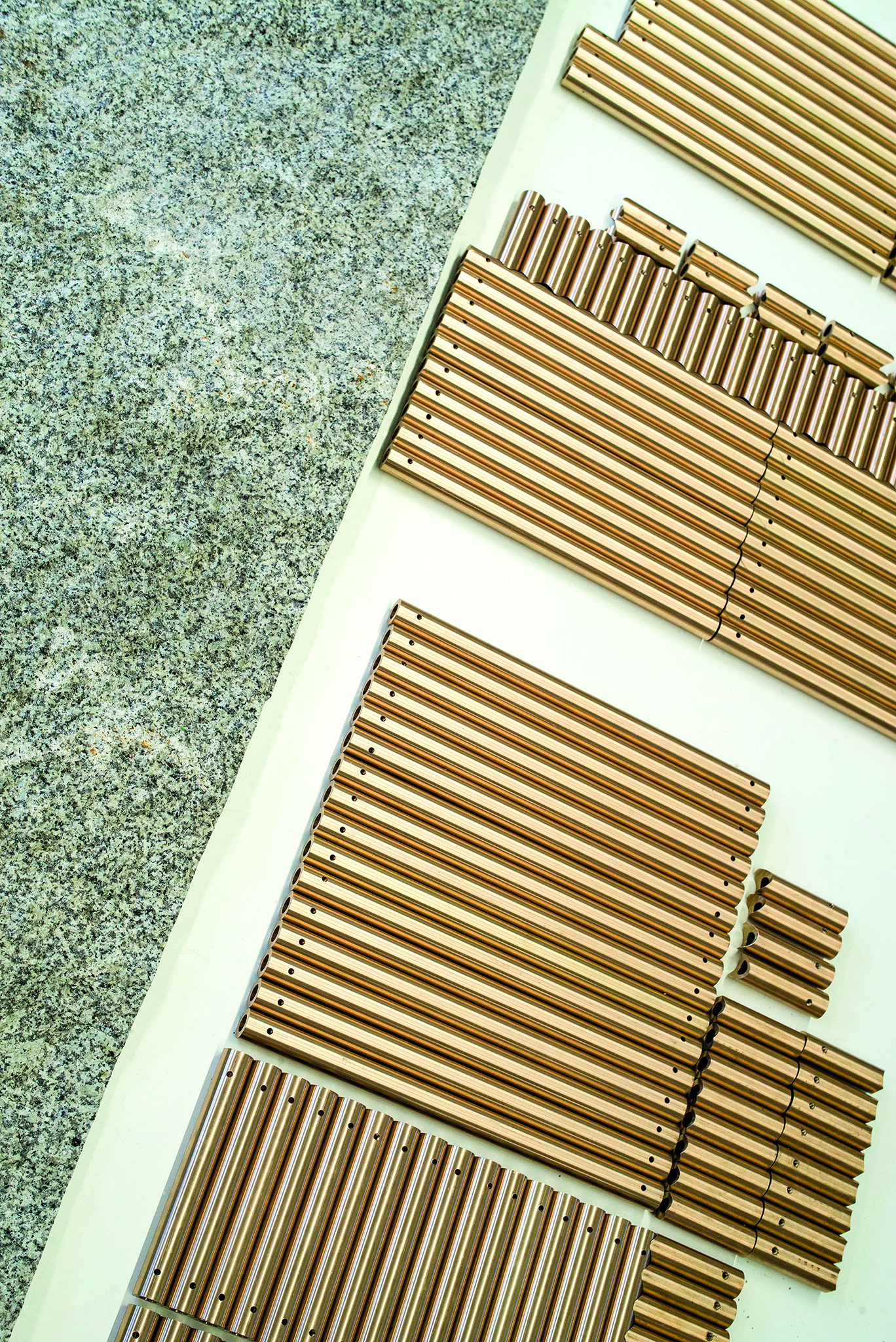Berlin based Studio Sacrale is a fusion of art and design created by Arne Soltau and Stefan Knauf. Their work is determined by intersections of the ritualistic and the banal, the sacred and the trivial, of control and fate, function and freedom, craft and coincidence, object and aura. Their ‚Granitsystemmöbel I‘ is the worlds heaviest yet most functional furniture system. Rough granite is placed on a bronze table frame system and covered with platforms of cast bronze, which solves an artificial problem and limits the usage at the same time. There is no limit to expansion.