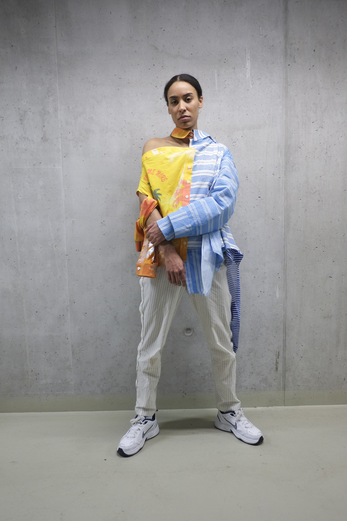 Der Zweiteiler, das Duett der Kleidungsstücke: Durch das Zusammenspiel ergänzt sich das Paar, definiert Eigenschaften einander, es reibt sich, kann sich auch entzweien, lässt dem Gegenspieler einen eigenen Auftritt, und findet immer wieder zueinander. Vom Anzug zum Twinset wird die Bandbreite der Partnerschaft recherchiert, die Stärke des Duos analysiert und für den eigenen Entwurf eingesetzt.