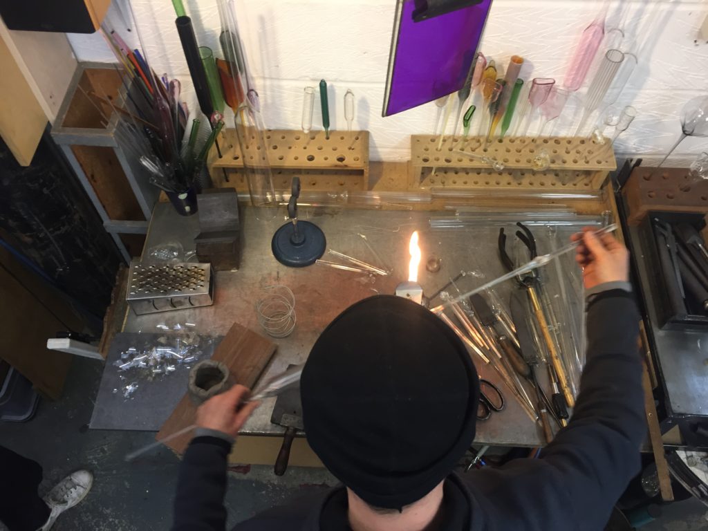Jochen Holz welcomed us for a day in his glas studio in London. His specialism is lampworking with borosilicate glass.