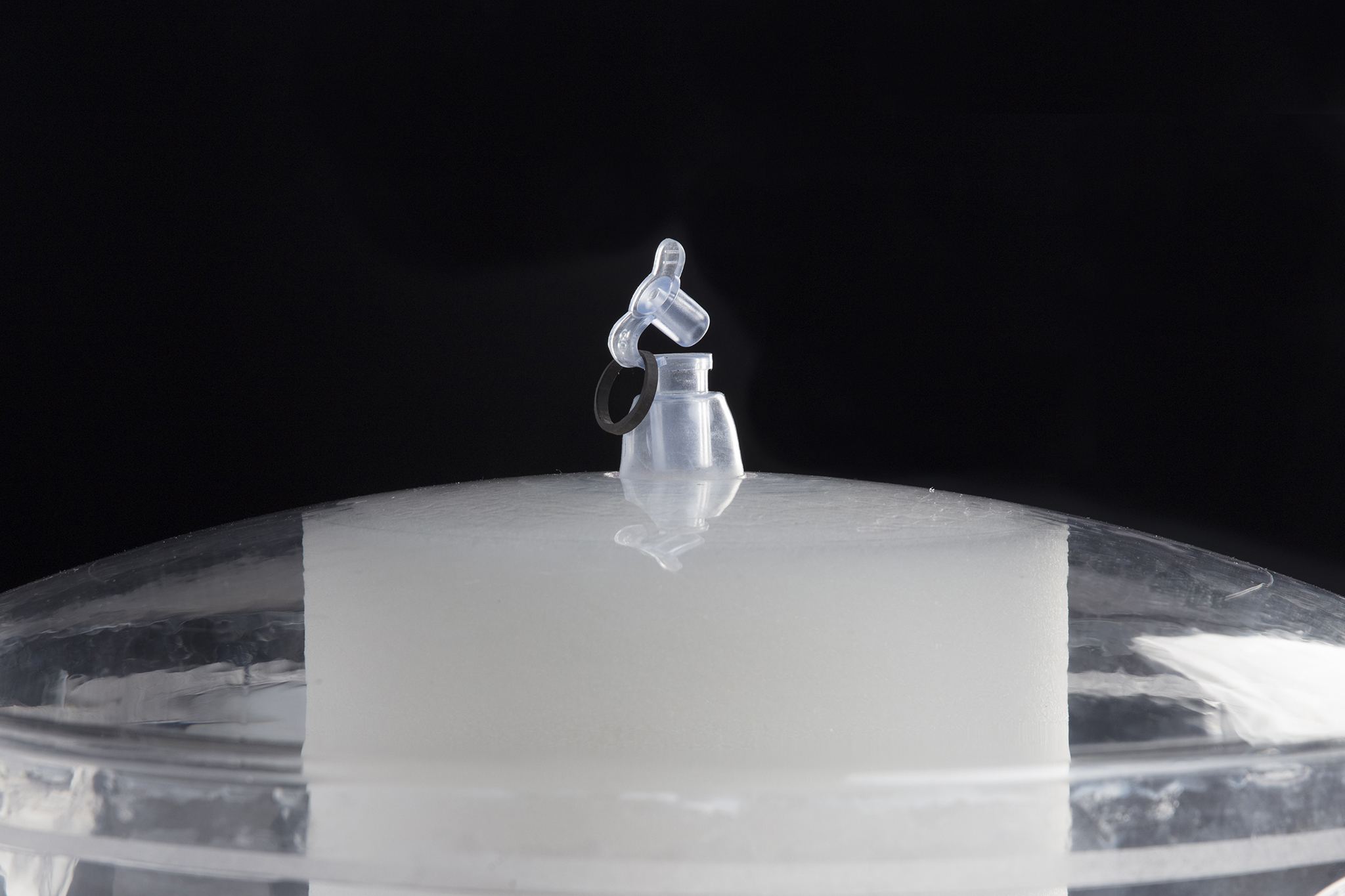 Wird foamaire nicht mehr benötigt, wird das Ventil geöffnet. Die obere Halbschale wird in Richtung Boden gedrückt, sodass die Luft entweicht und der Schaum komprimiert wird. Beim Minimum angelangt, wird das Ventil verschlossen. Der enthaltene Unterdruck garantiert, dass foamaire in Position bleibt und mühelos verstaut werden kann.