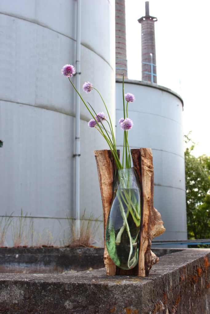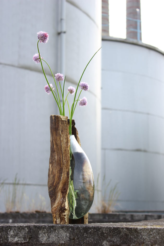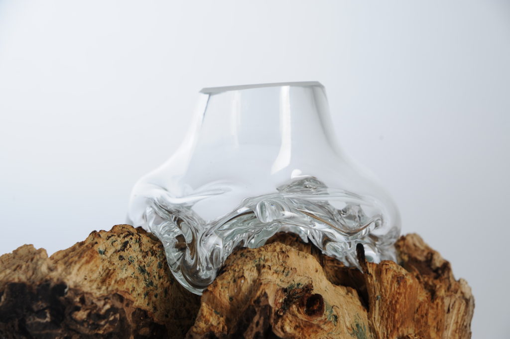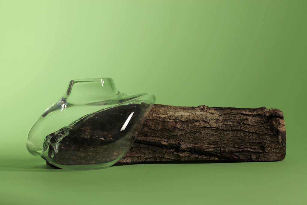 Zufall erschafft die schönsten Formen. Das war vor 70 Jahren so und ist es jetzt immer noch. 1944 wurden Glasperlen durch einen Brandbombenanschlag in eine bizarre organische Form gebracht. Das Material Glas und die Herangehensweise des Unplanmäßigen finden sich als Transfer in diesem Entwurf wieder. Diesmal war der Grad der Planung durch die Verwendung von Holzformen aber höher. Diese wurden jedoch nicht extra für den Entwurf gefertigt, sondern entspringen der Natur und dem Zufall.