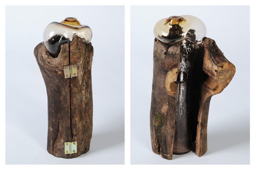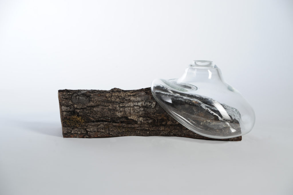 Ich möchte den Zufall in diesem Sinne als Werkzeug nutzen und mit seiner Hilfe neue, unerwartete, aussergewöhnliche und einzigartige Formen für den Werkstoff Glas entwickeln. Ich werde ein Stück weit die Kontrolle abgeben und nicht, wie üblich, Blasformen fertigen. Die Natur hält ein reichhaltiges Repertoire an Formen bereit und diese werde ich mir zu Nutzen machen. Ich nehme, was mir die Natur gibt. Verrottende Bäume, gespaltenes oder vom Sturm gebrochenes Holz und Vogelbauten in Stämmen sollen mir als Formen dienen, um entweder äußere Strukturen oder Hohlräume abzuformen. Durch diesen Prozess erhoffe ich mir, innovative Objekte zu schaffen, die nur durch das Zusammenspiel von Kontrolle und Zufall entstehen können.
