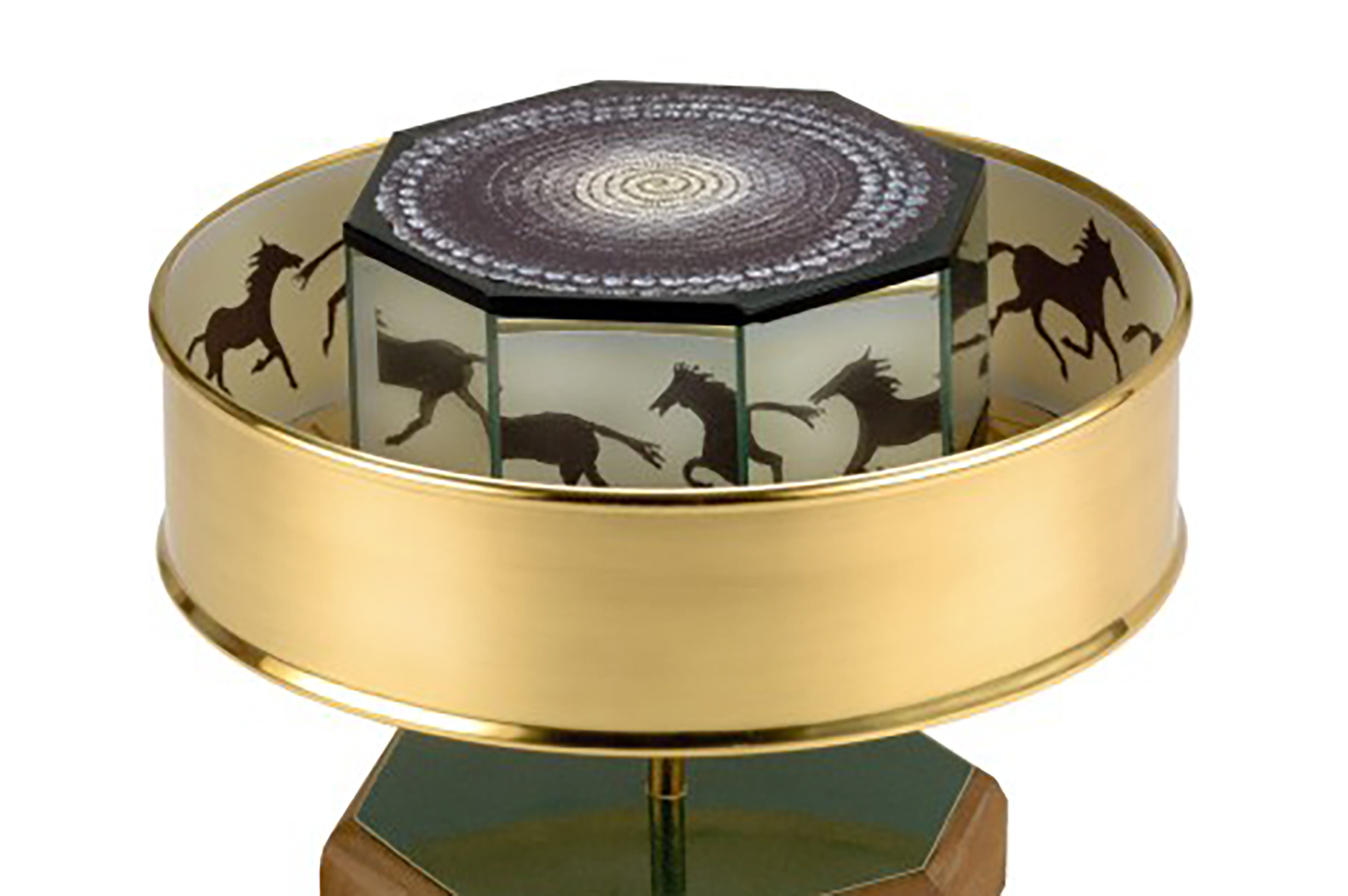 Basierend auf dem Prinzip des „Praxinoskops“ wird der Betrachter selbst Gegenstand eines „Endlosfilmes“. Sein Gesicht unterliegt dabei einem ständigen Prozess der Konstruktion und Dekonstruktion.