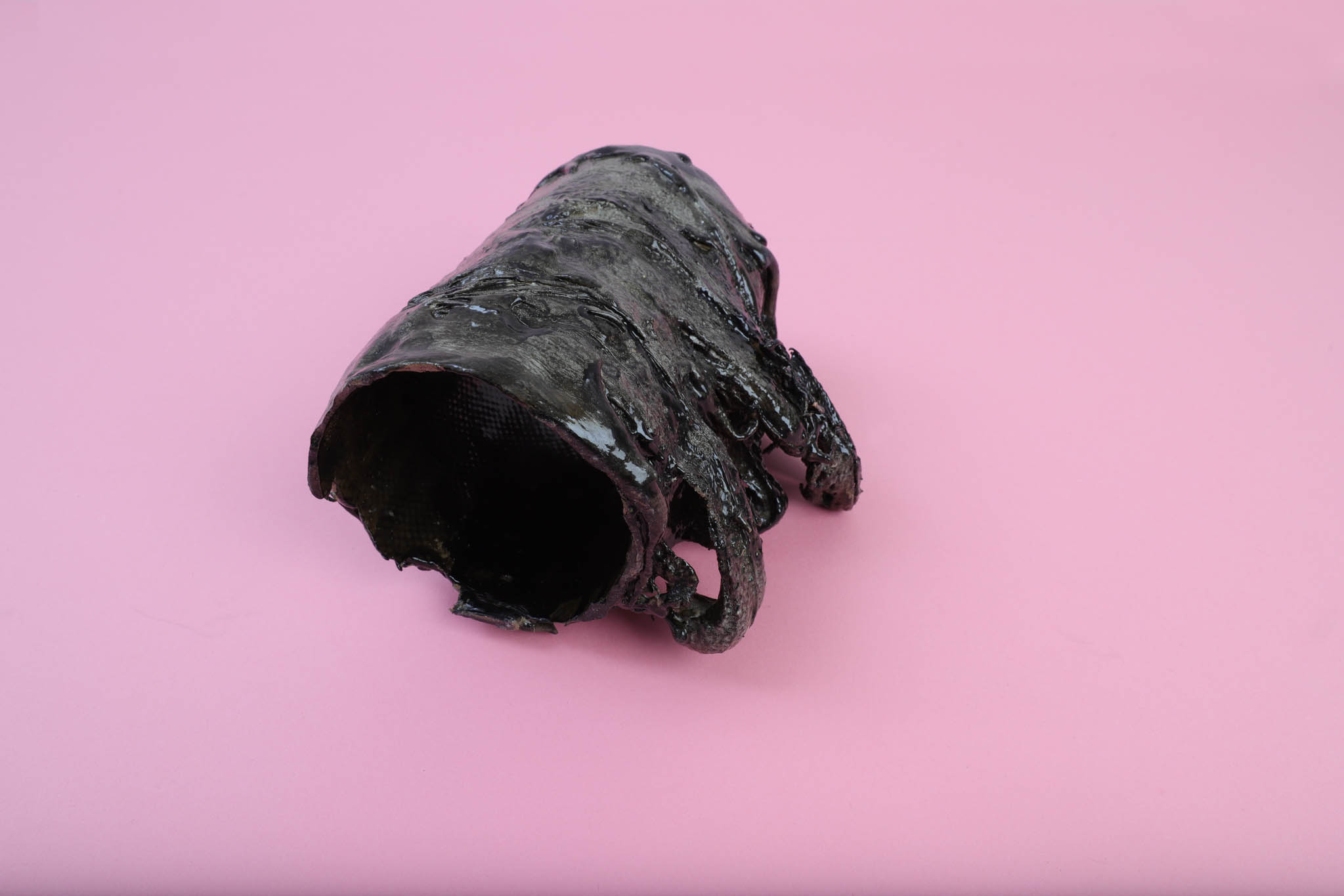 Dadurch entsteht ein neues Material, welches die Materialeigenschaften von Porzellan und Kaugummi vereint. Formen können ähnlich wie beim Glasblasen, beim moderieren oder beim Aufwickeln der gum+ Fäden generiert werden.