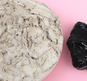 Herstellung: Der Kaugummi wird bei mittlerer Hitze gewaschen um dabei die Glukose zu lösen, dadurch verdichtet sich das Material. Anschließend wird die Rohmasse bei 100° geschmolzen und festigt sich durch die Zugabe von Schellack. Das Material wird warm in Form gebracht und härtet beim Abkühlprozess aus.