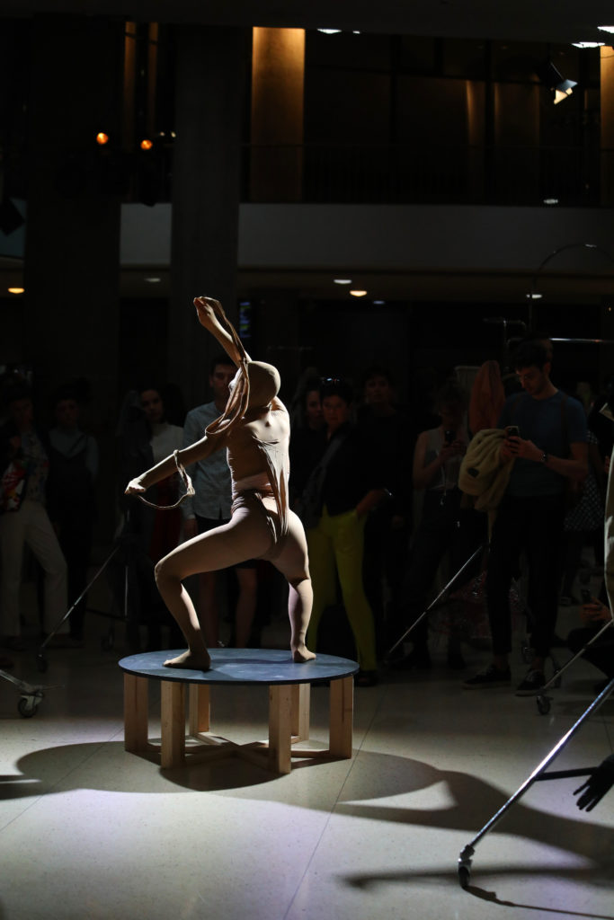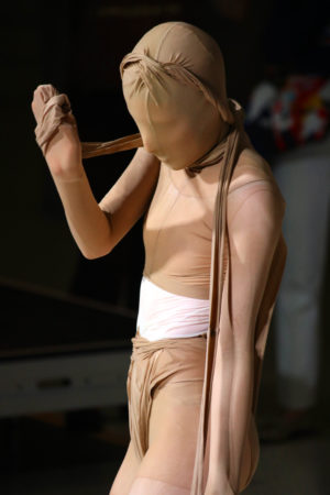 17 Studierende haben Kollektionen entworfen, die Geschlechteridentitäten in Frage stellen, Normen verwerfen und neue Körperlesarten ermöglichen. Vielfältigste Körperwahrnehmungen und –darstellungen dienten dabei als Inspirationsquelle: Unterwäsche erhält neue Funktionen, der virtuelle Körper einen analogen Dress. Vermeintlich weibliche Insignien werden mit männlichen vermischt, Queerness verhilft zu Aufbruch und Transformation in Schnitt und Farben. Nicht nur die Kollektionen erteilen eingeübten Körperwahrnehmungen eine Absage, auch die Präsentation bricht mit den Konventionen des klassischen Catwalks.