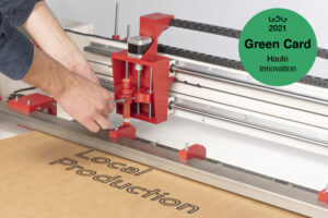 Cardboard Works is a machine for cutting cardboard and a series of products. The machine makes it possible to process cardboard on site. It is mobile and easy to build within two days, the plans are open source and every special part that you can´t get in you corner building shop is 3D printed. The open system makes it possible to develop one’s own tools and to become creative in the production or to adapt the application to local conditions. As a starting point 3 Tools for cutting, creasing and drawing where developed. A stool and a bin that come in handy at on site production anyways where developed with a folding plan from a flat sheet of cardboard as a starting point for local production.
