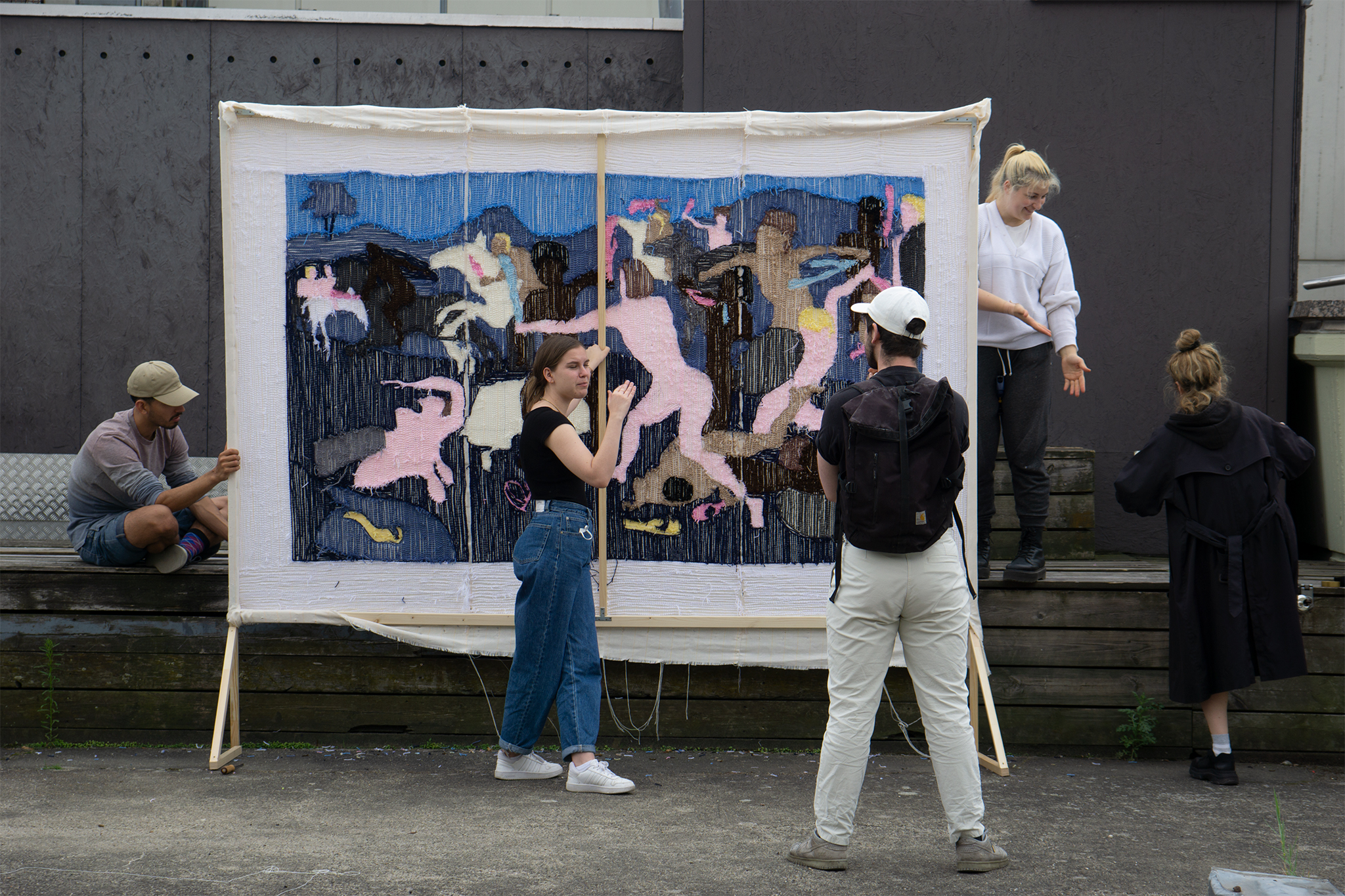 Der großformatige Wandteppich konterkariert die brutale Kriegsdarstellung des Originalgobelins mit seiner flauschigen Haptik und bricht mit der Darstellungsweise von Epen, indem die Krieger ihrer Rüstung beraubt und anstatt Waffen mit bunten Vibratoren ausgestattet lächerlich wirken. Die Absurdität von Krieg als aufeinander einschlagende Männer, die mit phallusartigem Penisersatz ihre Macht demonstrieren, wird ersichtlich. Die Arbeit ist als schmunzelnder Kommentar aus feministischer Perspektive zum Patriarchat zu verstehen.