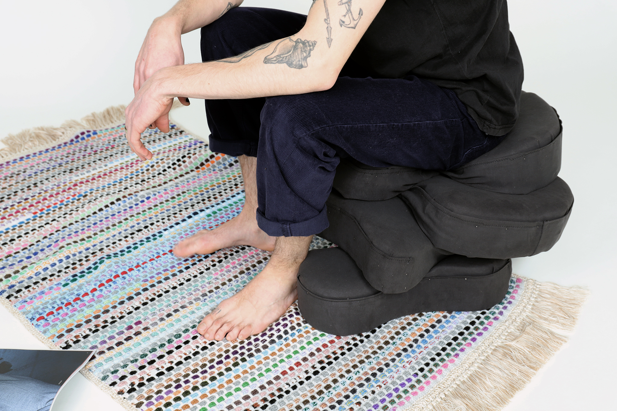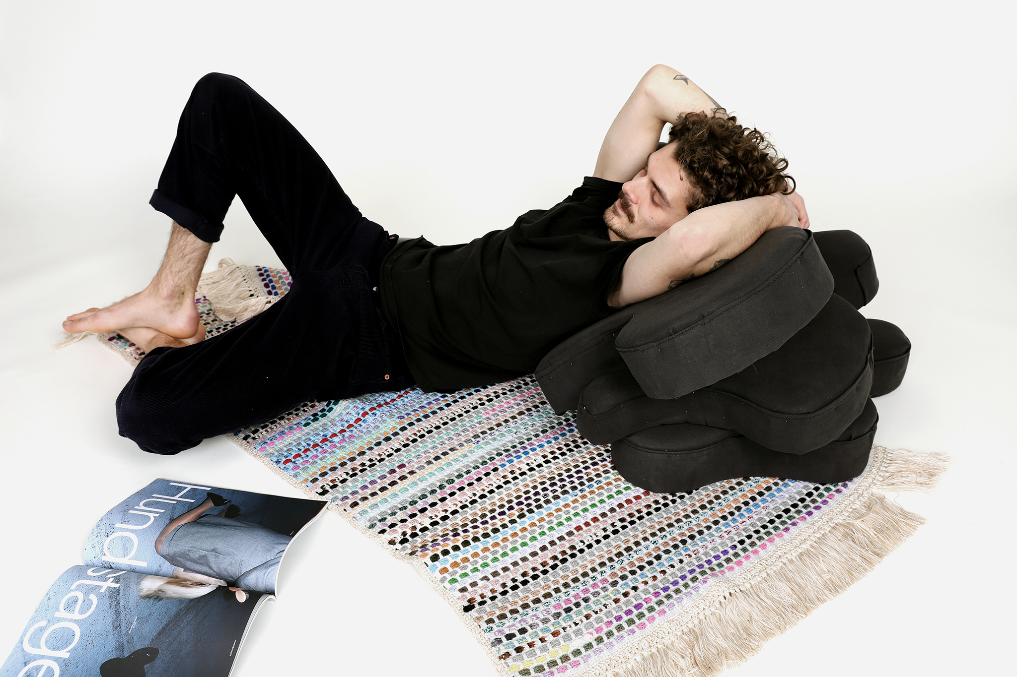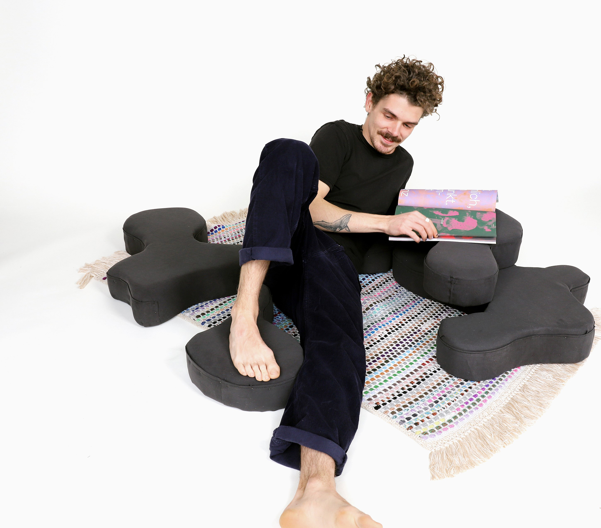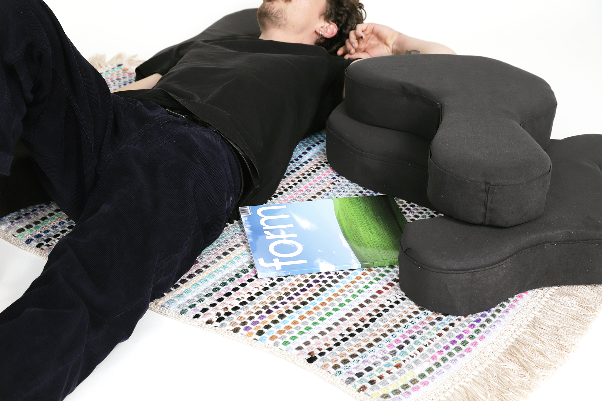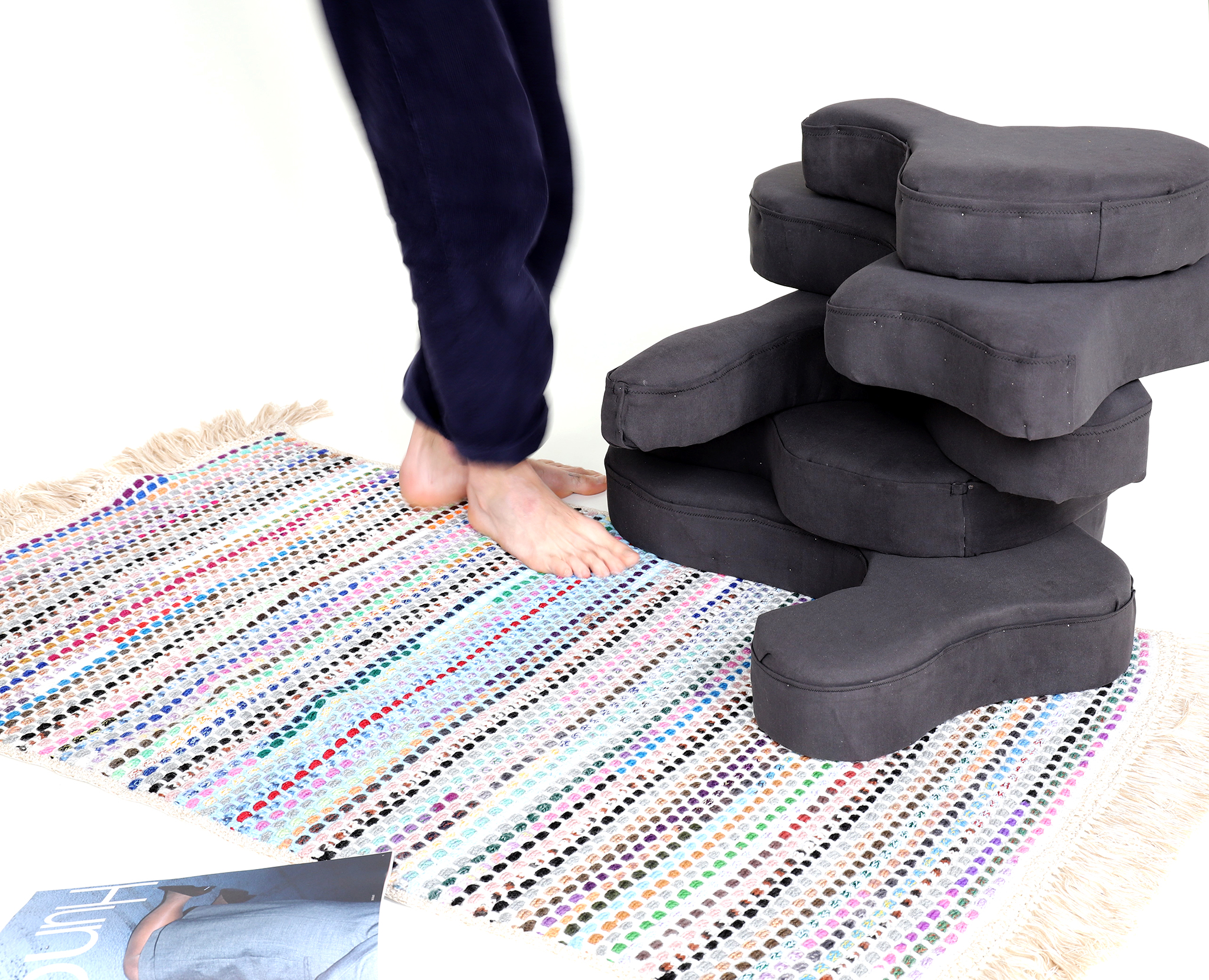 Cozy untersucht die Grenzen der Form und den daraus resultierenden Nutzen. Die mit Stoff überzogenen Schaumstoffformen folgen alle dem gleichen Prinzip. Dem Prinzip der Anpassung an den menschlichen Körper.