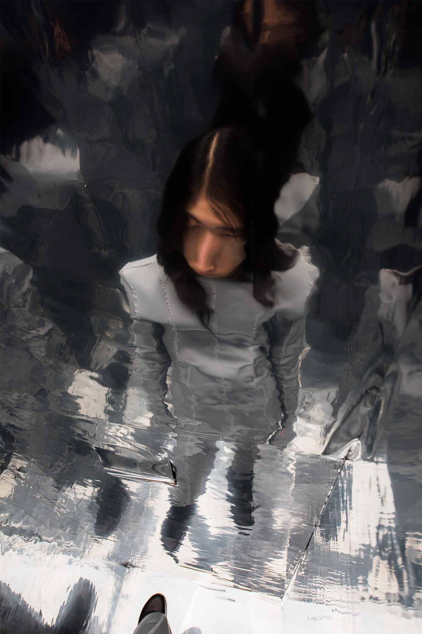 „me and the other“ thematizes the body as a sensitive subject and focuses on the dialogue between garment and body. The relationship between body and garment happens on three different levels. At first the object/dress is oppressive and forces itself onto body. The second level gives the body/subject power over the dress. At last both levels distort into each other and form a whole.
