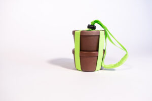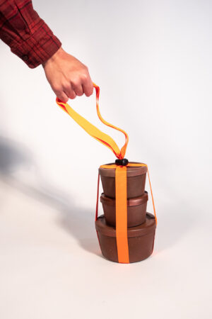 A sustainable food container made from ground up nut shells for local Mexican eateries