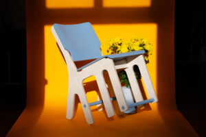 The chair is made of two milled wood multiplex boards and two moulded wood parts and has an ergonomic back and seat backrest.