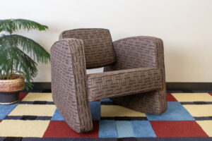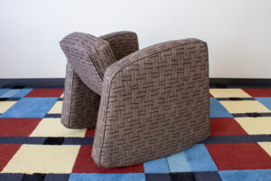 The angled seating and backrest together with the curved armrests provides support and allow for a good posture alignment. Under its fabric hides a three layer padding and cushioning structure where the slightly firmer foam structure caters for the right pressure between the chair and the body and it will also be resistant to wear and pressure from rocking over time.