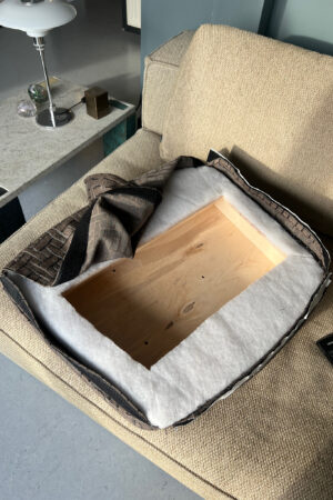 The modular four piece design enables a convenient and effortless assembly, for just a single person. The side elements come with pre-installed threaded rods that are fixed inside the seating and backrest, hidden away under invisible velcro openings. With an included wrench and bolts, there will be no room for errors, and it is fast and easy to connect the pieces to each other.