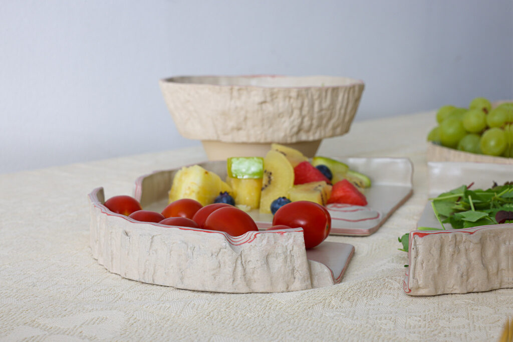 Tableware inspired by trees, designed to evolve. Breaks and chips reveal tree ring-like patterns that add intentional beauty.