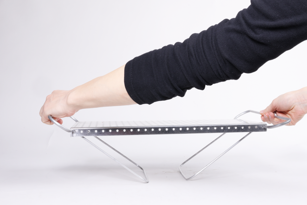 Kapela is a small folding table. Designed to be lightweight, compact and easily opened. It is made of bent aluminium sheet, a rod and an aluminium pipe. No hinges, no glue.