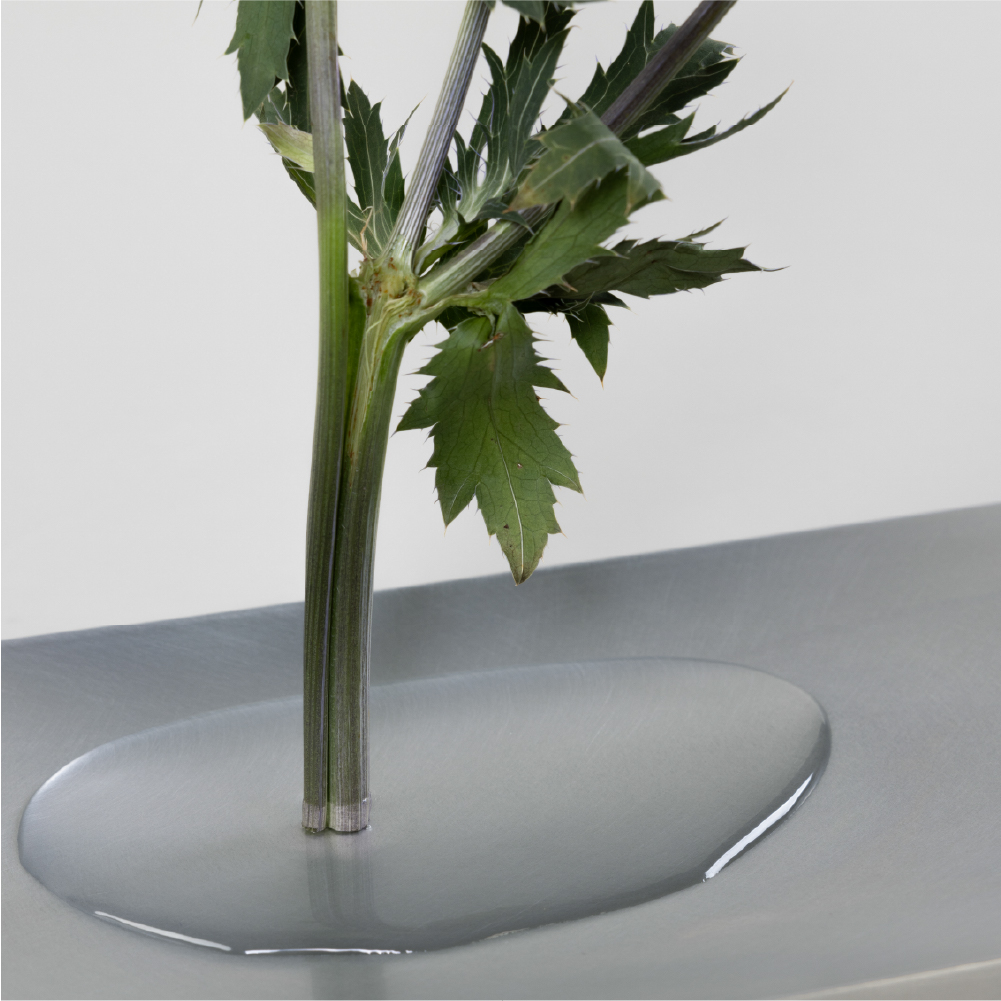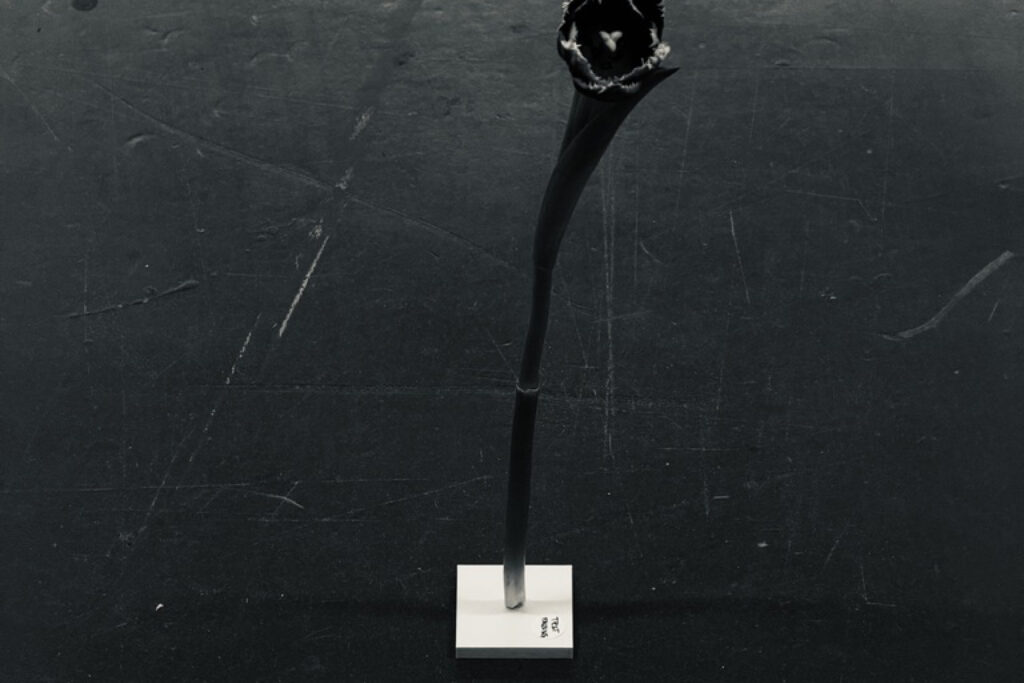 Vase. Sie rahmt eine einzelne Blume und schafft bewusst Raum für Betrachtung, Pflege und