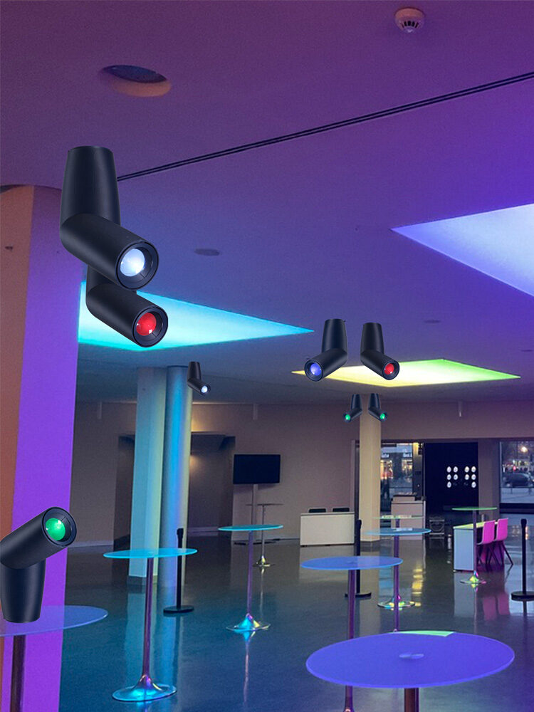 My guidelines were to design an alternative moving light fixture that maintains professional functionality while reducing visual intrusion. I rethought the traditional pan-tilt setup, which requires three separate components, in favor of a single unified body using a 45-degree hinge and a concealed rotating base, enabling hemispherical movement.