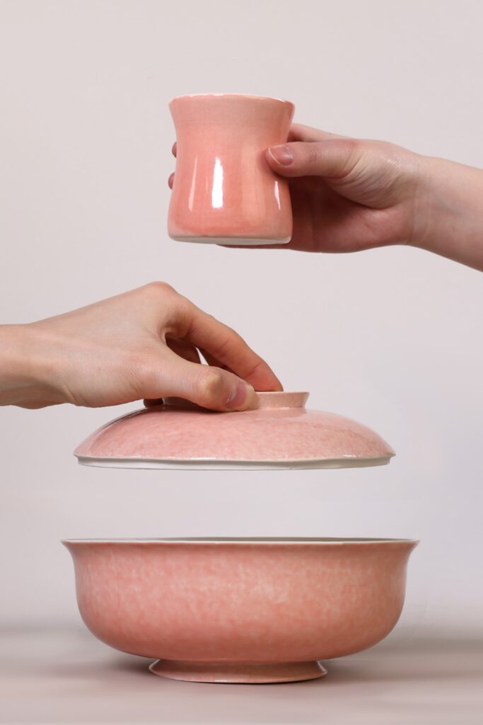 Dieses Projekt vereint Schale, Teller und Becher in einem einzigen stapelbaren System. Die Gefäße