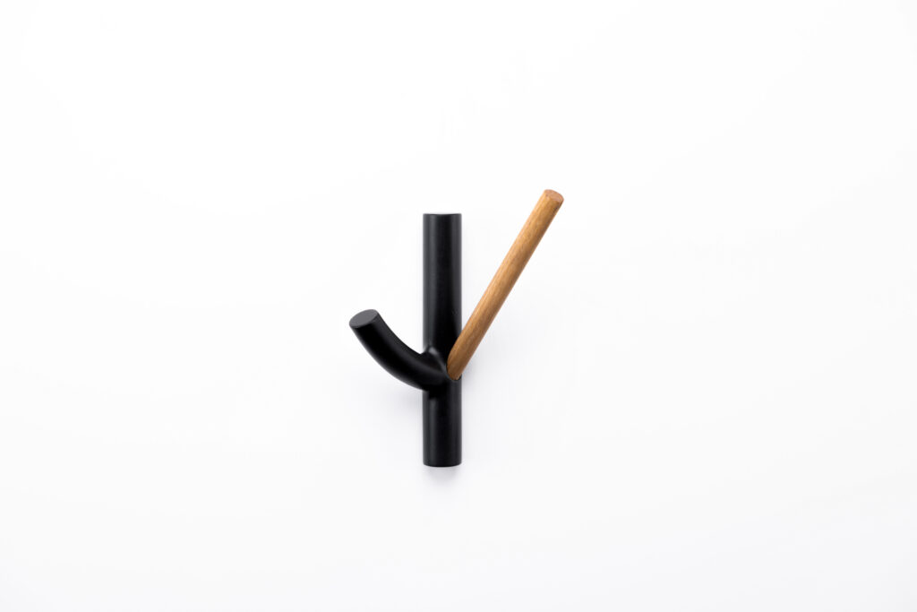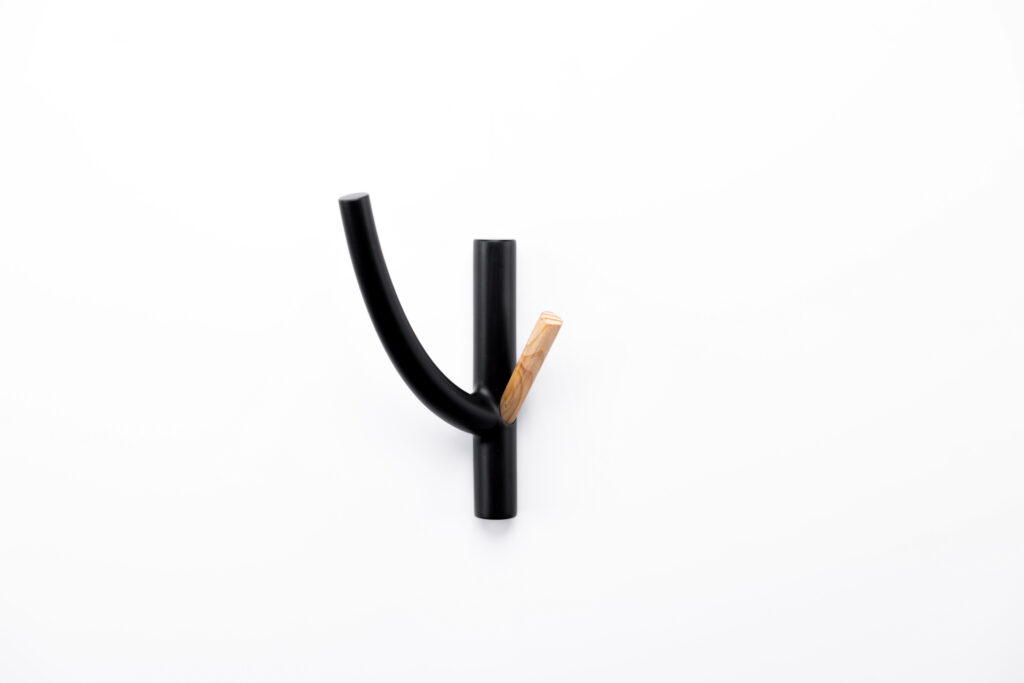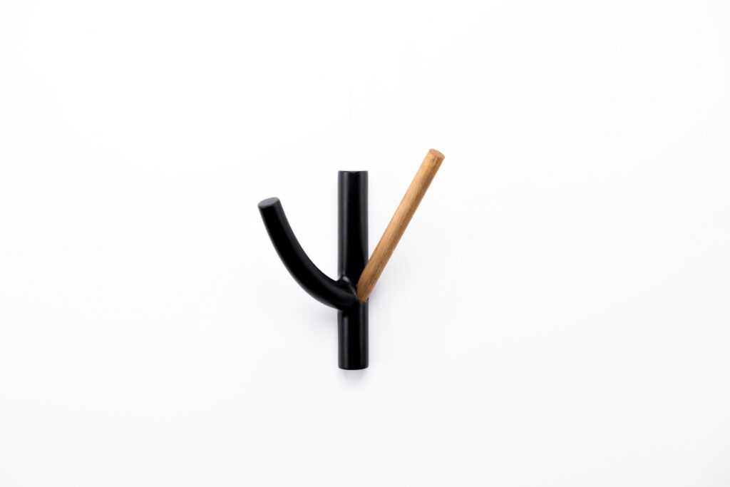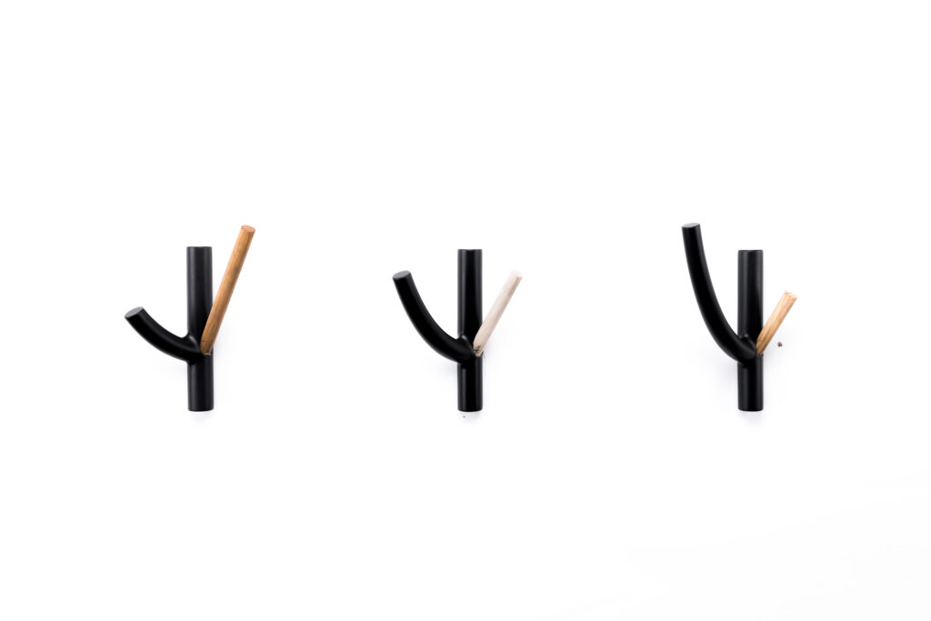 Wallhook3X3 explores the wall hook as the opposite of gravity, an object that prevents things from falling. Starting from naturally occurring hook-like forms found in branches and plant growth, the design translates organic geometries into a modular wall hook system.