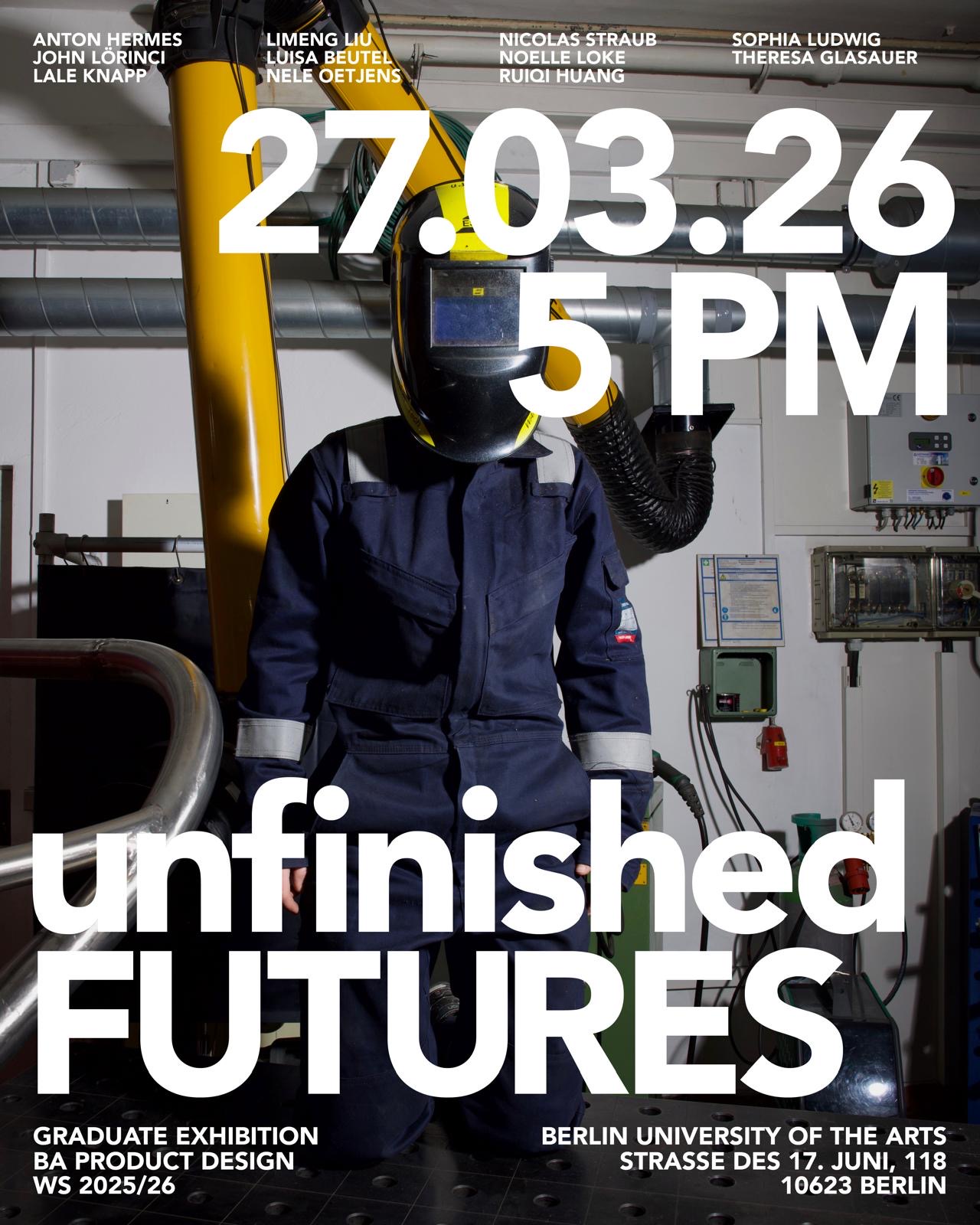 ‘Unfinished Futures’ versammelt die Abschlussarbeiten von elf Absolvent_innen des Studiengangs Produktdesign an der Universität der Künste Berlin.