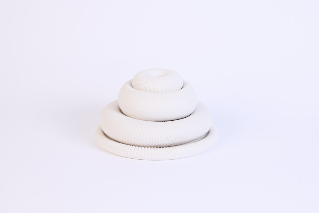 In der gehobenen Gastronomie war Porzellan bisher oft nur funktionaler Rahmen. Cielo denkt diese Rolle neu: Als stapelbare Tischskulptur wird das Set zum Teil des kulinarischen Erlebnisses. Anstatt Gänge einzeln zu reichen, entdecken Gäste das Menü Schicht für Schicht von oben nach unten. Die matte Bisquit-Optik bewahrt dabei eine edle Zurückhaltung, die das Essen spannend inszeniert, ohne es zu dominieren.